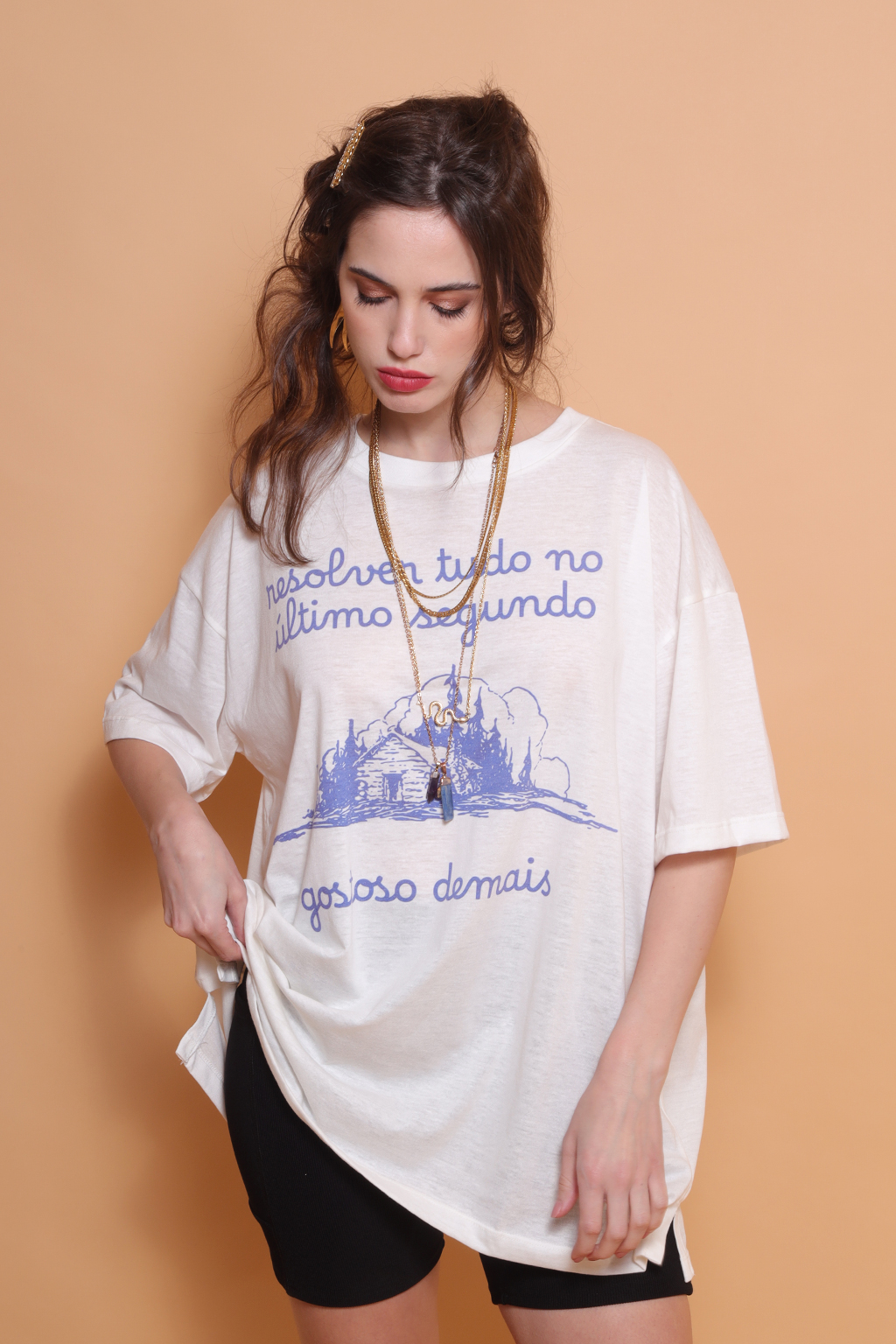 A camiseta oversize Último Segundo AMP é uma peça unissex, com modelagem ampla e manga curta. Nossa camiseta de malha é feita em tecido meia malha de algodão, confere um toque mais macio e agradável. A camiseta oversize Último Segundo tem como estampa a frase “resolver tudo no último segundo, gostoso demais”, com uma paisagem no centro da peça. Essa estampa trata do costume de todo grande procrastinador: deixar e resolver tudo no último segundo.