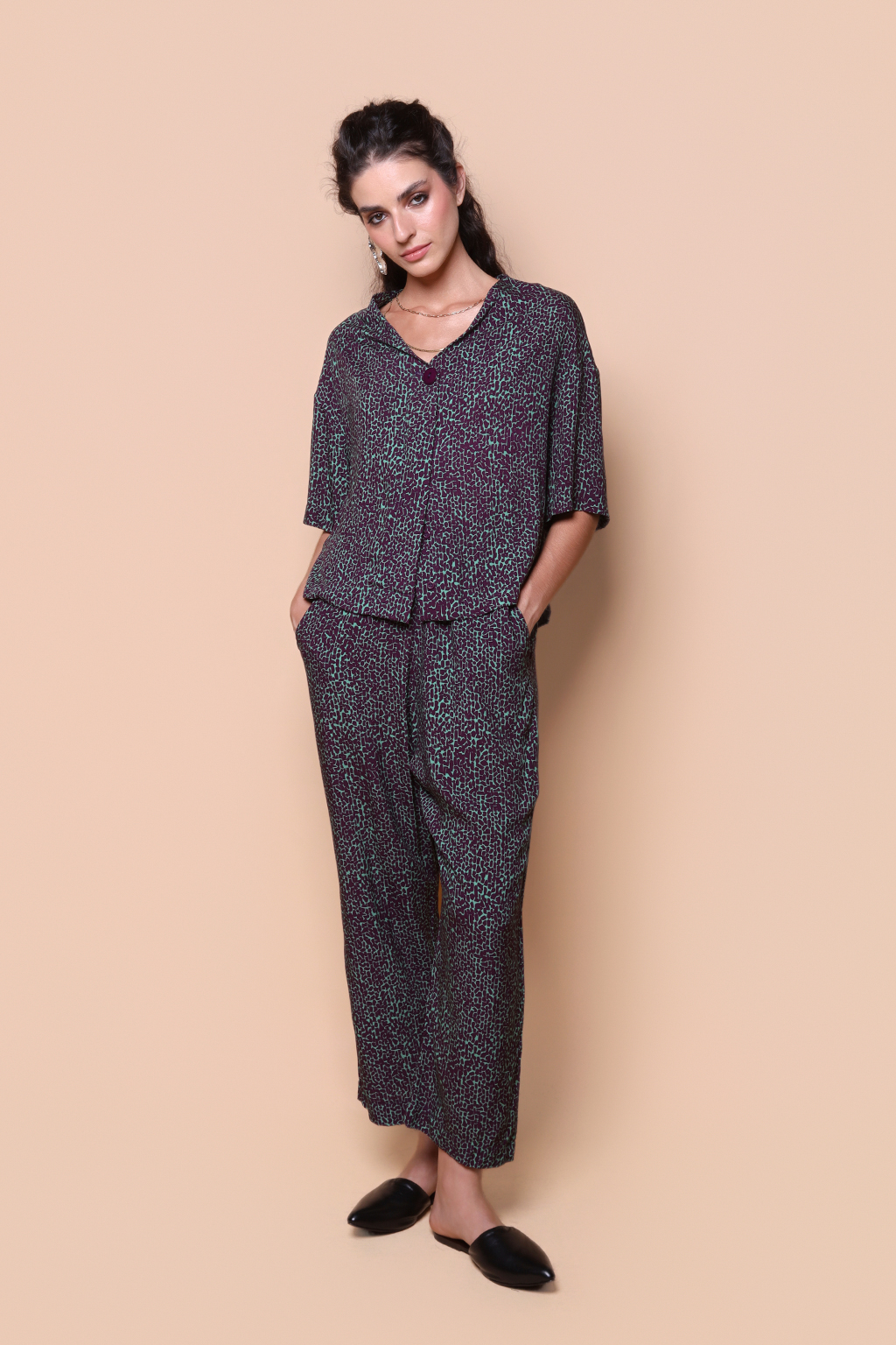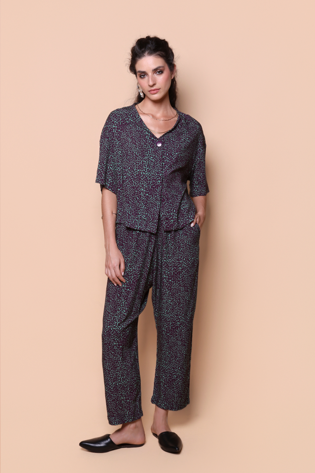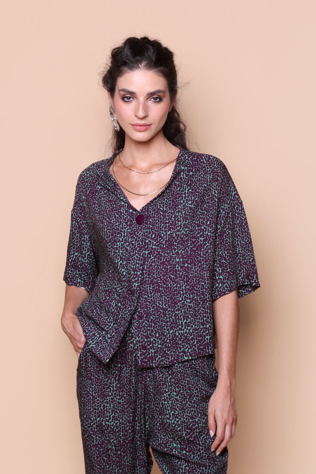 Blusa dois botões estampada Desfiladeiro ametista