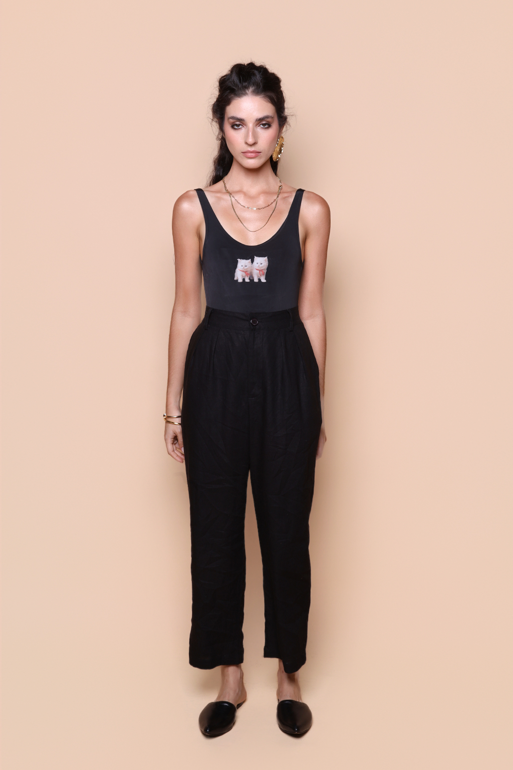 Body básico malha preto Gatinhos. A modelo mede 1,72 e usa tamanho P.