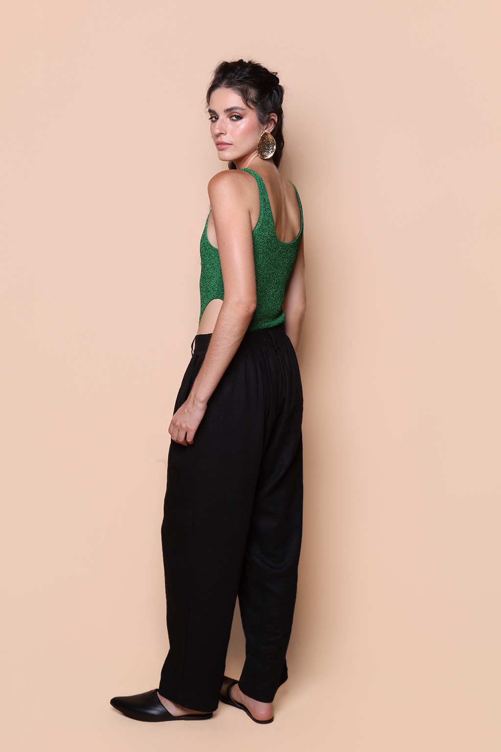 Body cavado regata lurex verde.