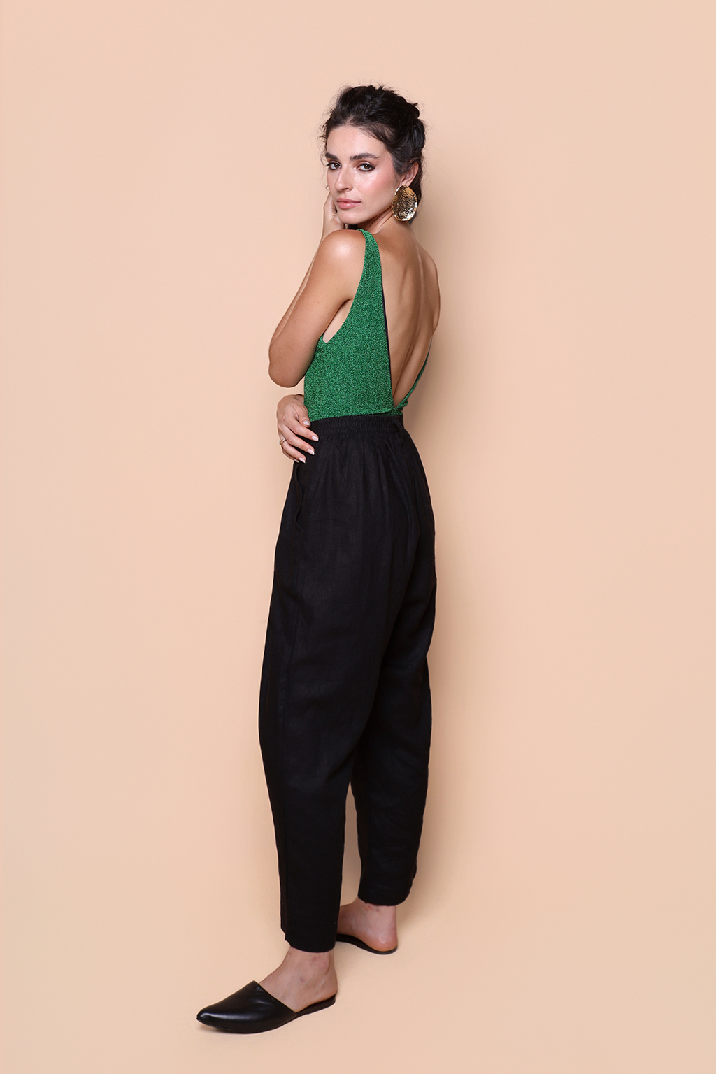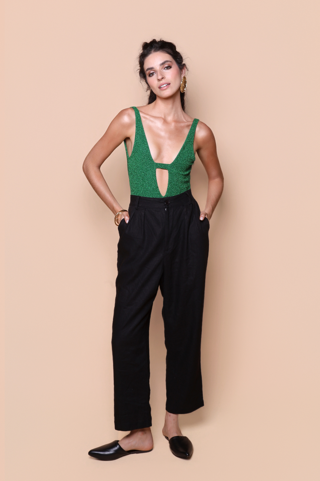 Body decote fechadura lurex verde.