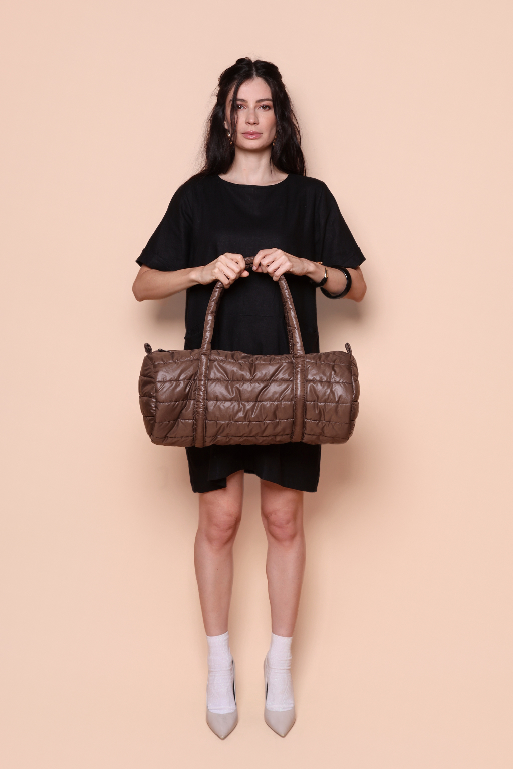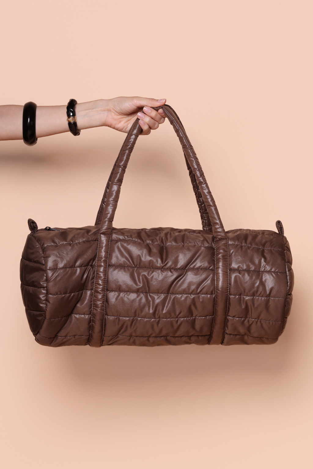 Bolsa puffer cilindro academia marrom.