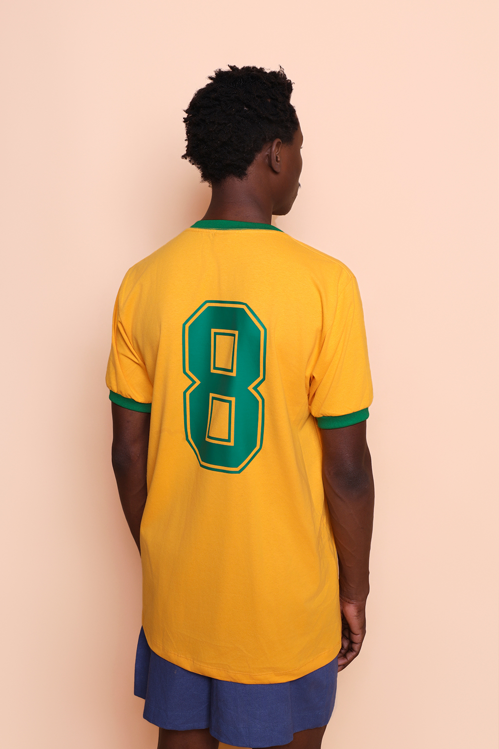 Por fim, a camisa 8 pertencia ao Sócrates, capitão daquela seleção, que fez gols importantes contra a União Soviética na primeira fase e contra a Itália, pela segunda fase, na derrota por 3 a 2 que eliminaria o Brasil do torneio.