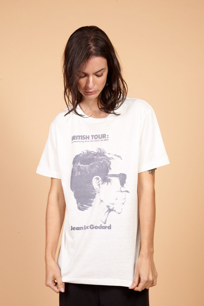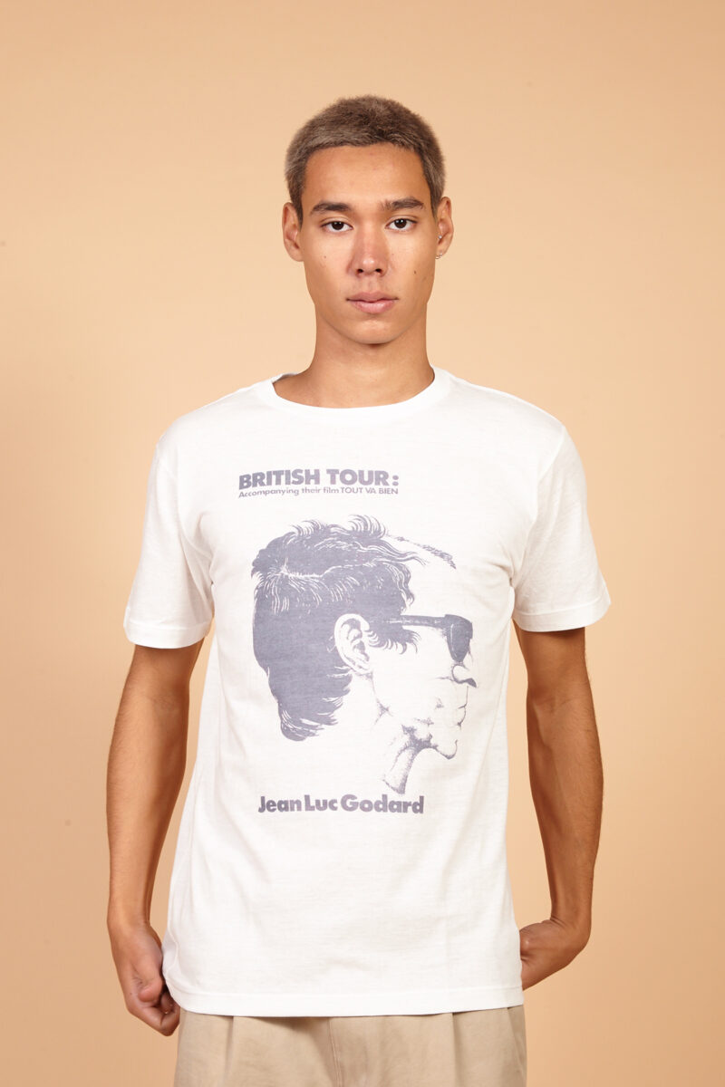 A Camiseta de malha off white AMPTout Va Bien fala sobre o filme de drama político franco-italiano de 1972dirigido por Jean-Luc Godard e o colaborador Jean-Pierre Gorin e estrelado por Jane Fonda e Yves Montand .