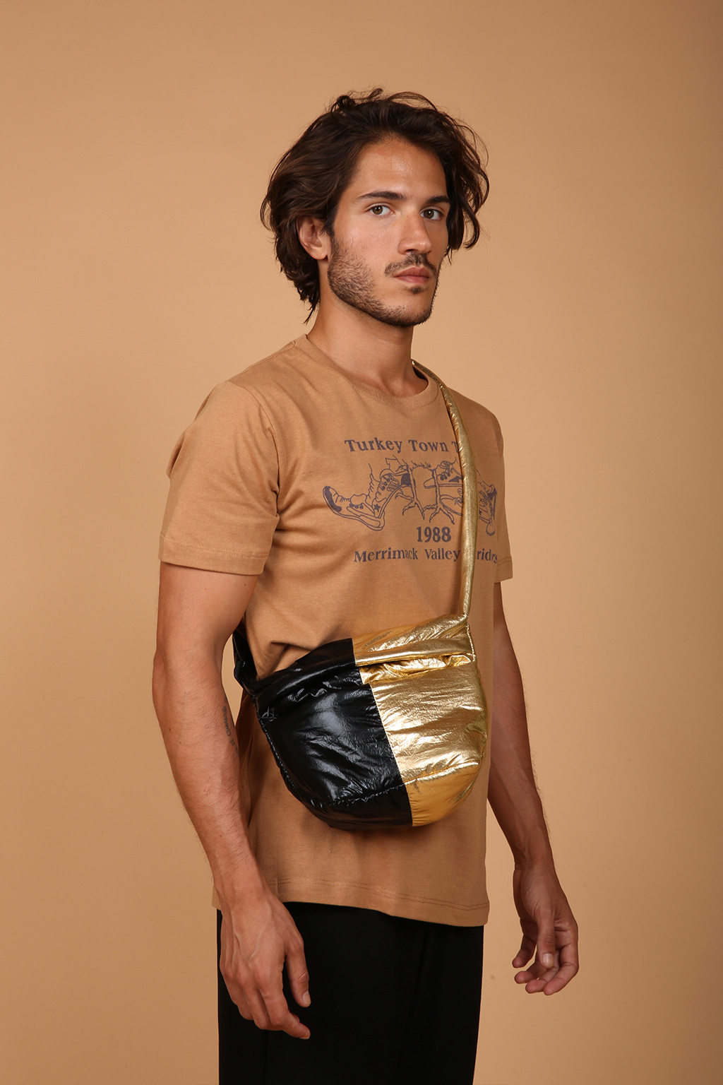 A camiseta bege estampada Turkey AMP é uma camiseta unissex, com modelagem reta e manga curta. Nossa camiseta de malha é feita em tecido meia malha de algodão, que confere um toque mais macio e agradável. A camiseta bege Turkey tem como estampa um costume estadunidense específico do Dia de Ação de Graças. A “turkey trot” é uma corrida a pé, geralmente de longas distâncias, realizadas durante o feriados de Ações de Graças. A corrida de Merrick Valley, Massachusetts, acontece desde 1988, e tem, atualmente, uma média de 10 mil corredores, sendo assim uma das maiores “corridas de peru” da região da Nova Inglaterra.