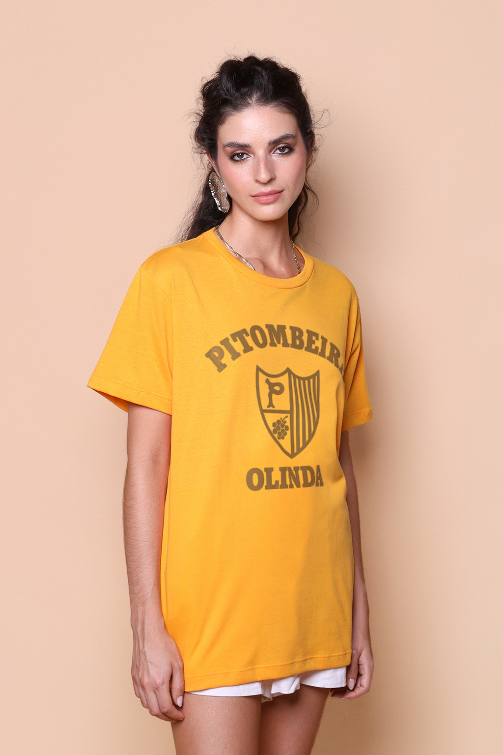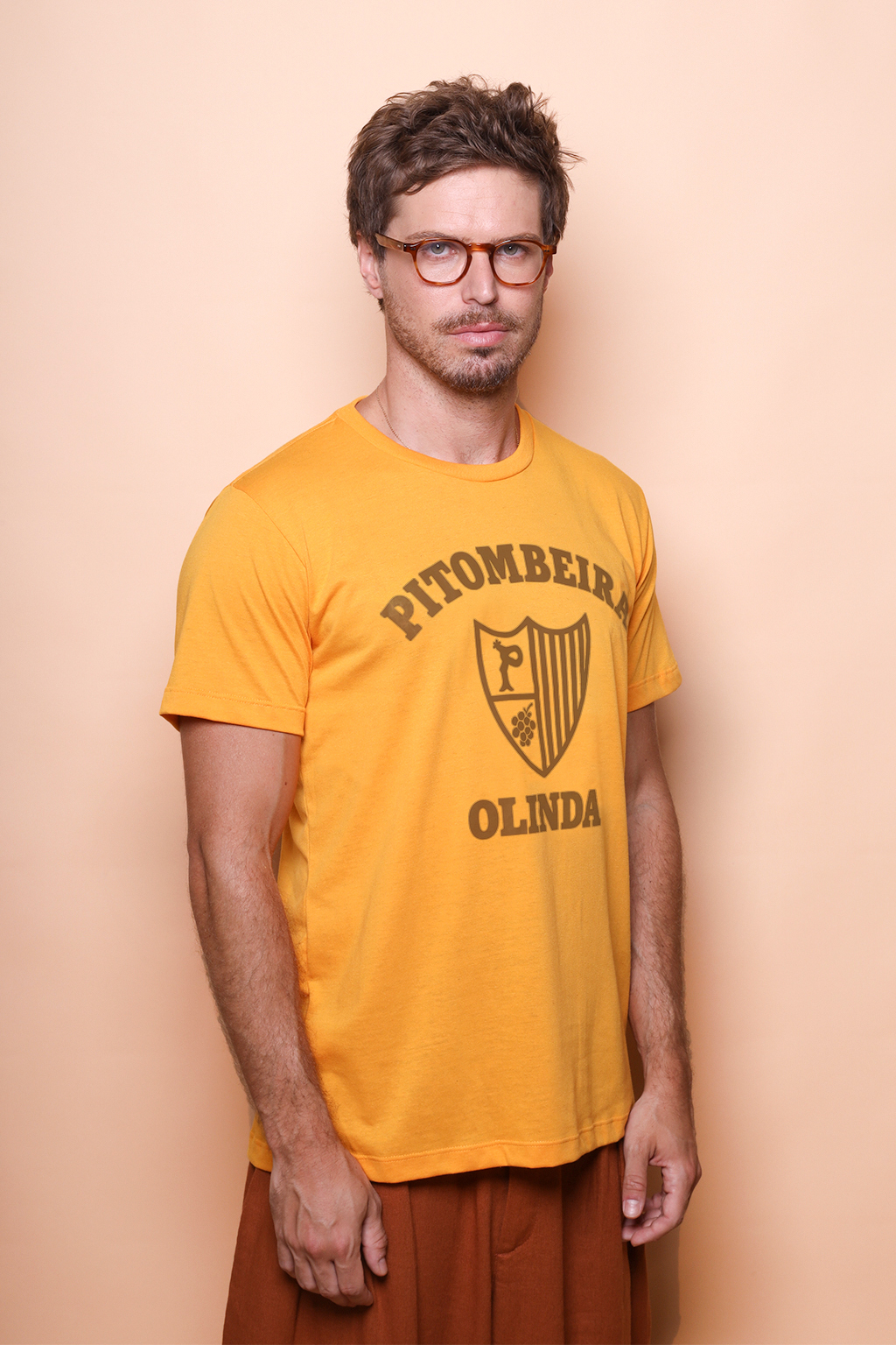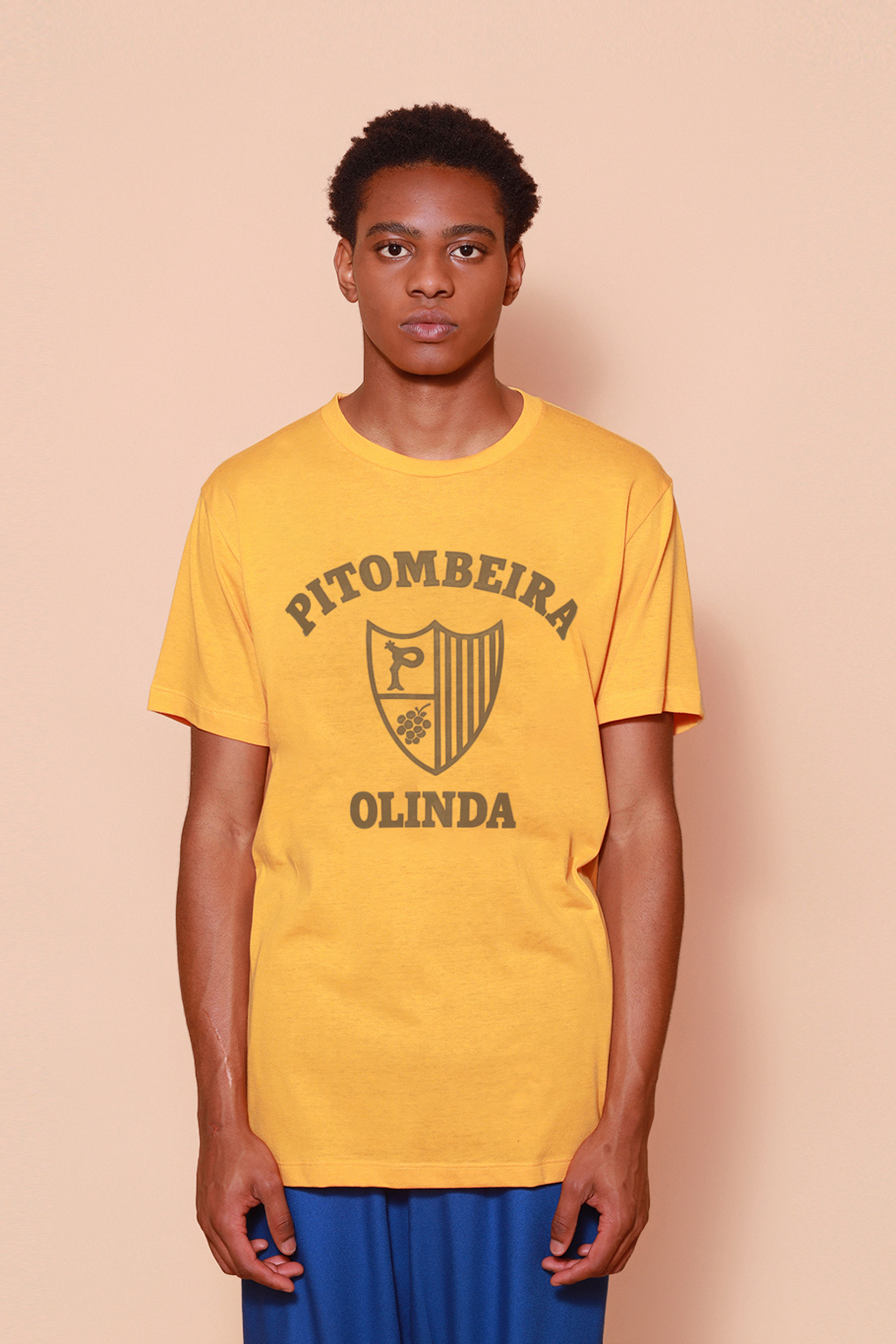 A camiseta Pitombeira é confeccionada em tecido meia malha de algodão para um toque mais macio e agradável. Essa peça faz parte de uma coleção collab com o filme O Agente Secreto, novo filme de Kleber Mendonça Filho indicado ao Globo de Ouro. Em especial, a camiseta Pitombeira traz como estampa o escudo da Troça Carnavalesca Mista Pitombeira dos Quatro Cantos, agremiação carnavalesca de Olinda, no Pernambuco. Fundada em 1947, tem como cores o amarelo e o preto, porém o escudo em questão surgiu apenas em 1978, ano importante para a agremiação, que teve como enredo daquele ano o tema “Festa das Nações”.
