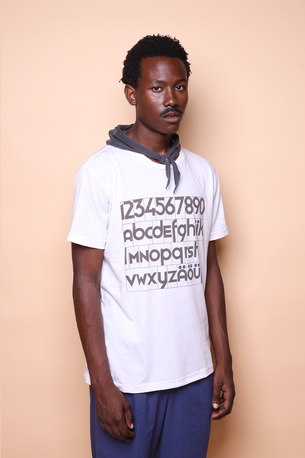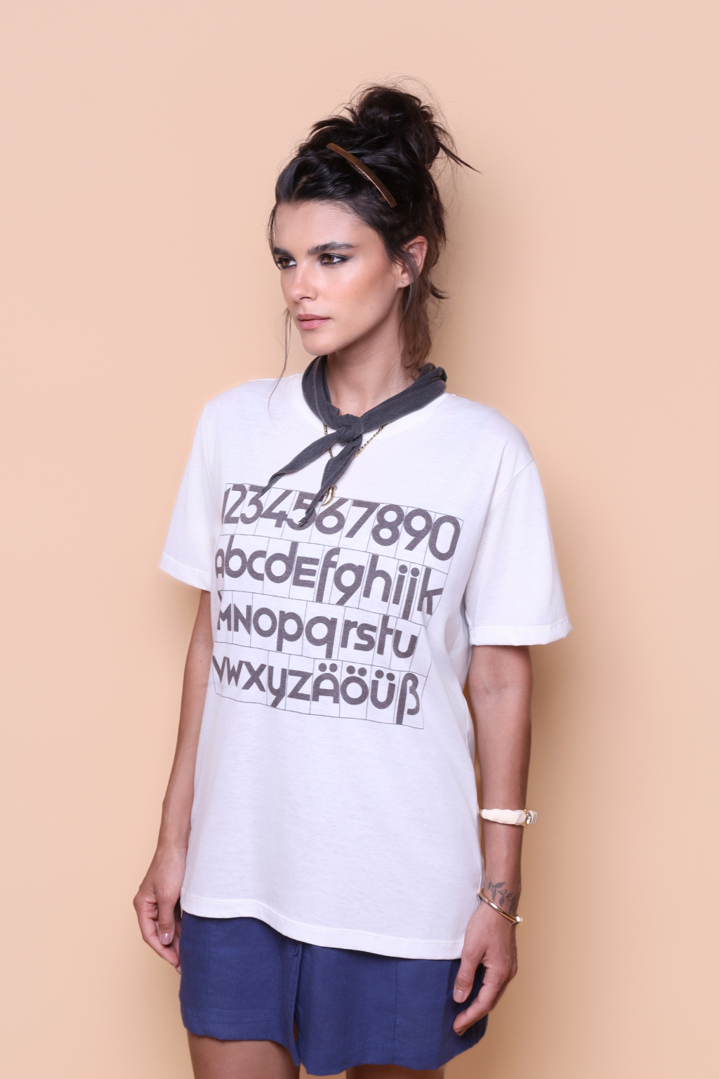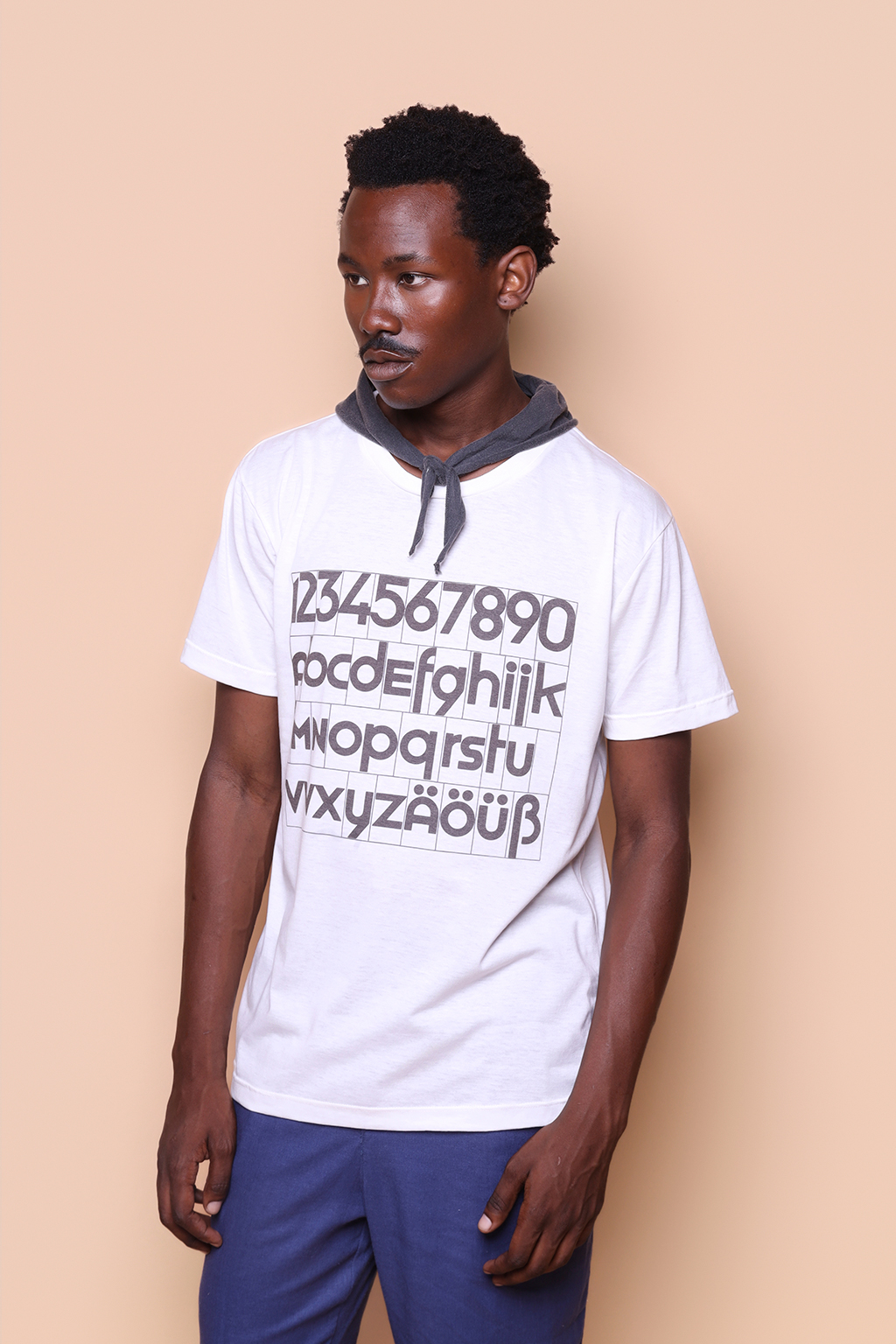 A camiseta Burchartz é confeccionada em tecido meia malha de algodão, dando um toque mais macio e agradável. Além disso, tem como estampa a tipografia desenvolvida por Max Burchartz, pintor, tipógrafo e fotógrafo alemão. Considerado um pioneiro do design moderno, Burchartz nunca atingiu a mesma fama de outros artistas de seu tempo, embora muitos dos designs de comunicação atuais , como o sistema de controle de cores, são baseados no trabalho de Burchartz.