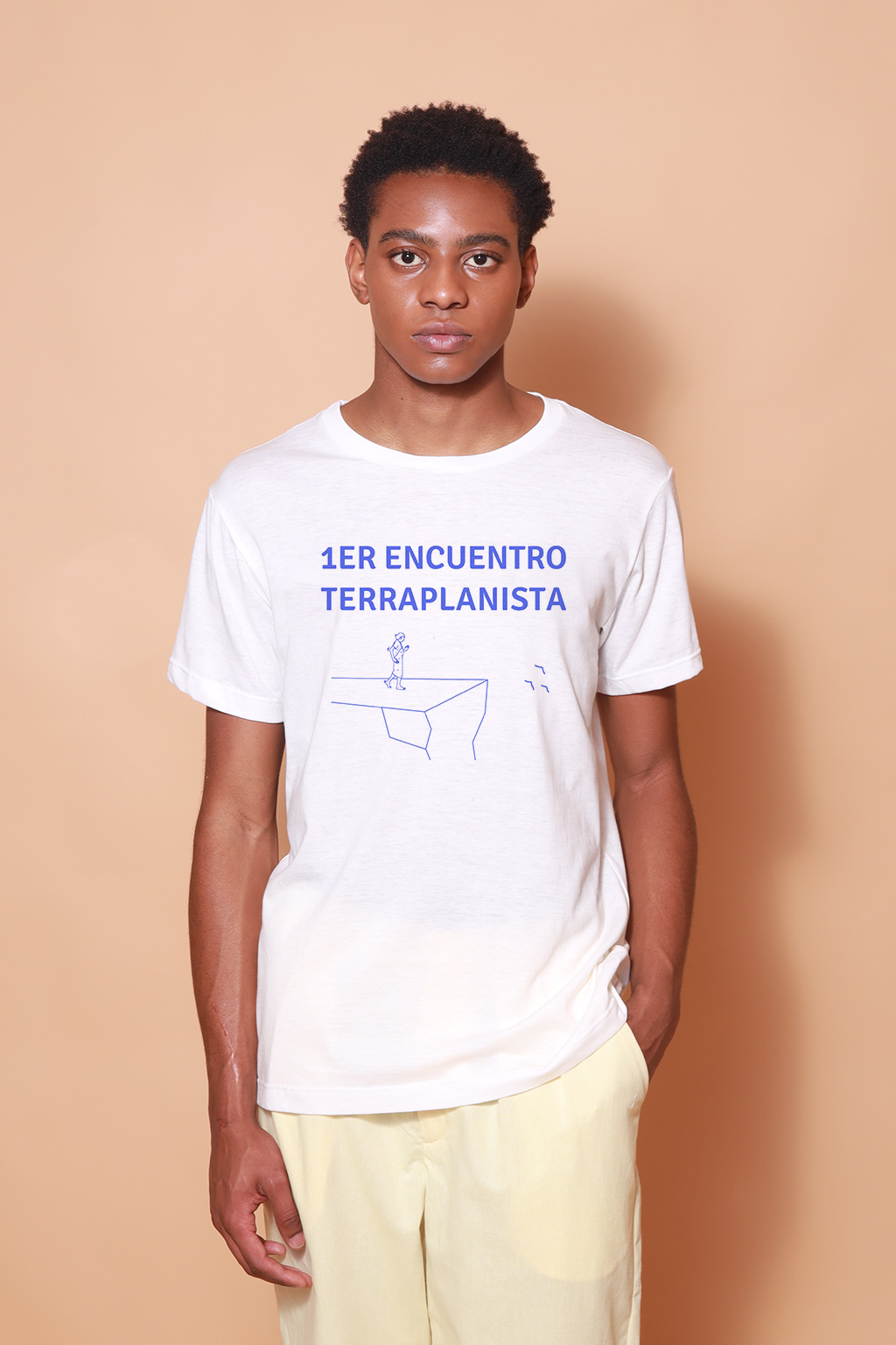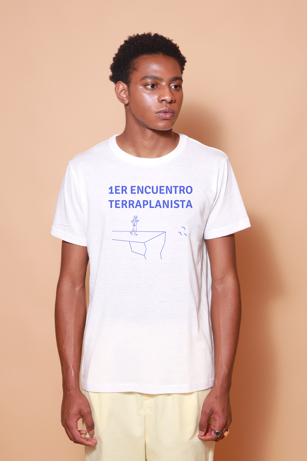 A camiseta Encontro Terraplanista AMP é uma peça unissex, com modelagem reta, manga curta e confeccionada em tecido meia malha de algodão, dando um toque mais macio e agradável. A camiseta Encontro Terraplanista tem como estampa a frase em espanhol “primeiro encontro de terraplanistas”, com a figura de uma pessoa caminhando em direção ao final do mundo. No Brasil, o primeiro encontro de terraplanistas aconteceu no dia 10/11/2019, na Convenção Nacional da Terra Plana, em São Paulo.