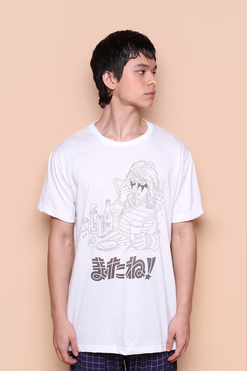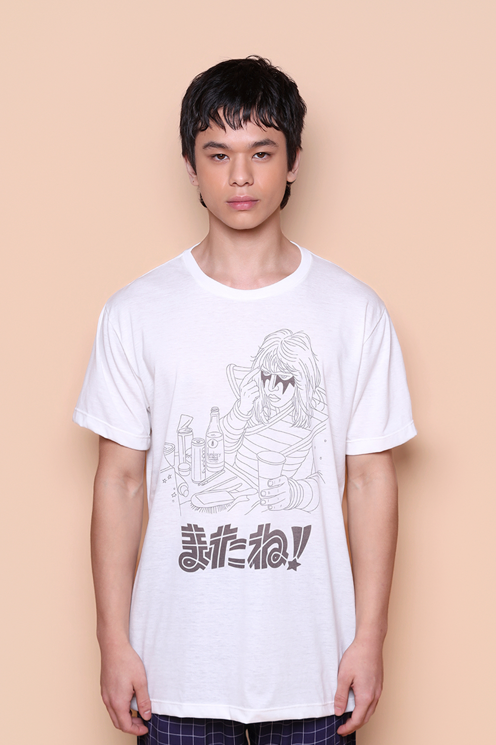 A camiseta Kiss japonês é confeccionada em tecido meia malha de algodão, dando um toque mais macio e agradável. Além disso, tem como estampa um desenho estilizado do guitarrista Ace Frehley, um dos membros originais da banda Kiss, com uma palavra japonesa escrita embaixo, que pode ser traduzida como “see you”, ou, até logo. Ace Frehley entrou pro Hall da Fama do Rock em 2014, e foi classificado pela revista Guitar World como 14° maior guitarrista de metal de todos os tempos.