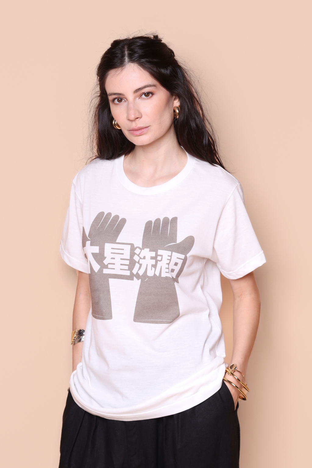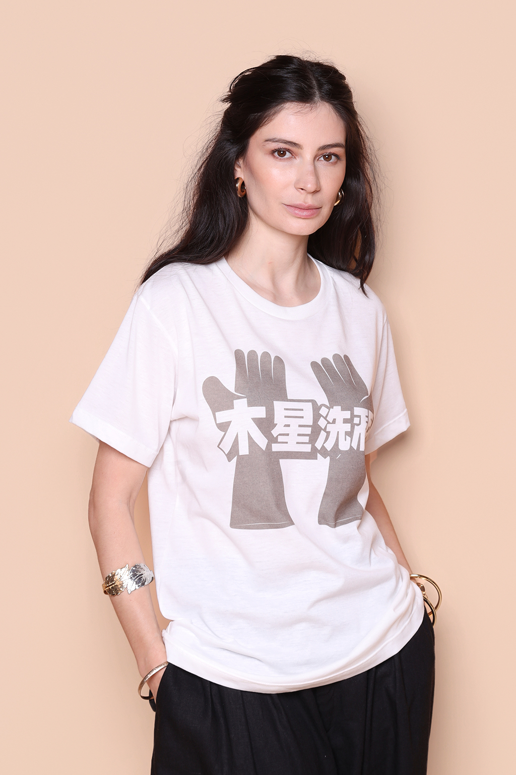A camiseta Lavanderia Júpiter luvas é confeccionada em tecido meia malha de algodão, dando um toque mais macio e agradável. Além disso, tem como estampa uma frase escrita em japonês, que se traduz para “Lavanderia Júpiter”. Trata-se de um nome fictício que busca homenagear uma das nacionalidades com mais imigrantes no Brasil, a japonesa. A ideia por trás da Lavanderia Júpiter é justamente de um estabelecimento imaginário mas muito comum em bairros como a Liberdade e o Bom Retiro em São Paulo.