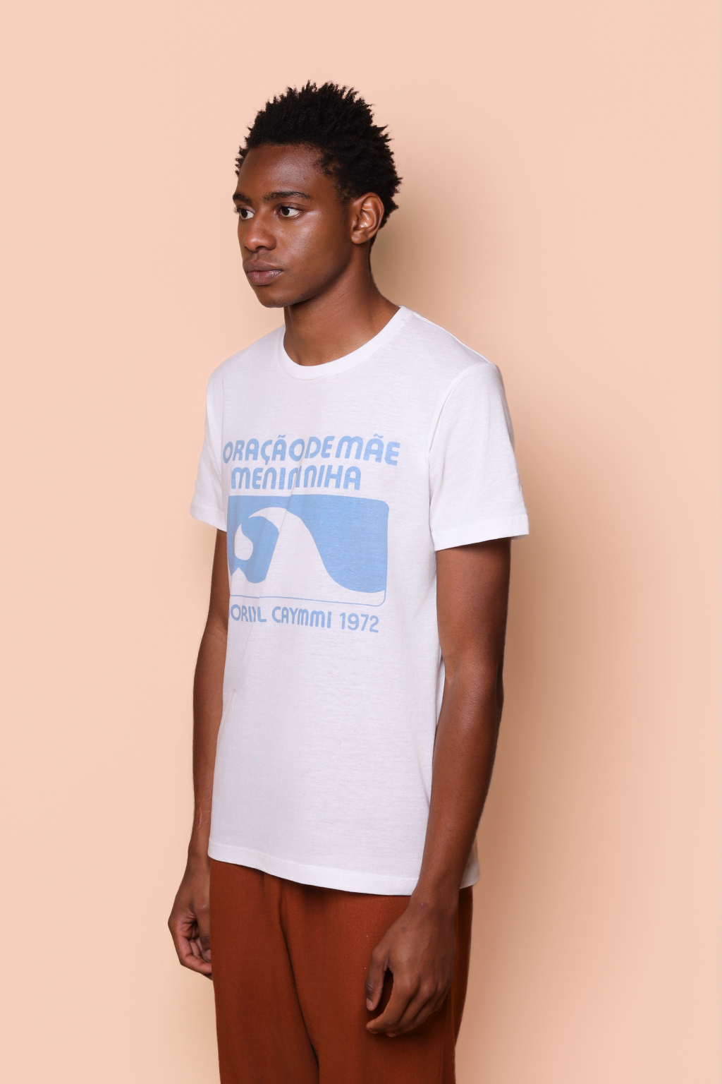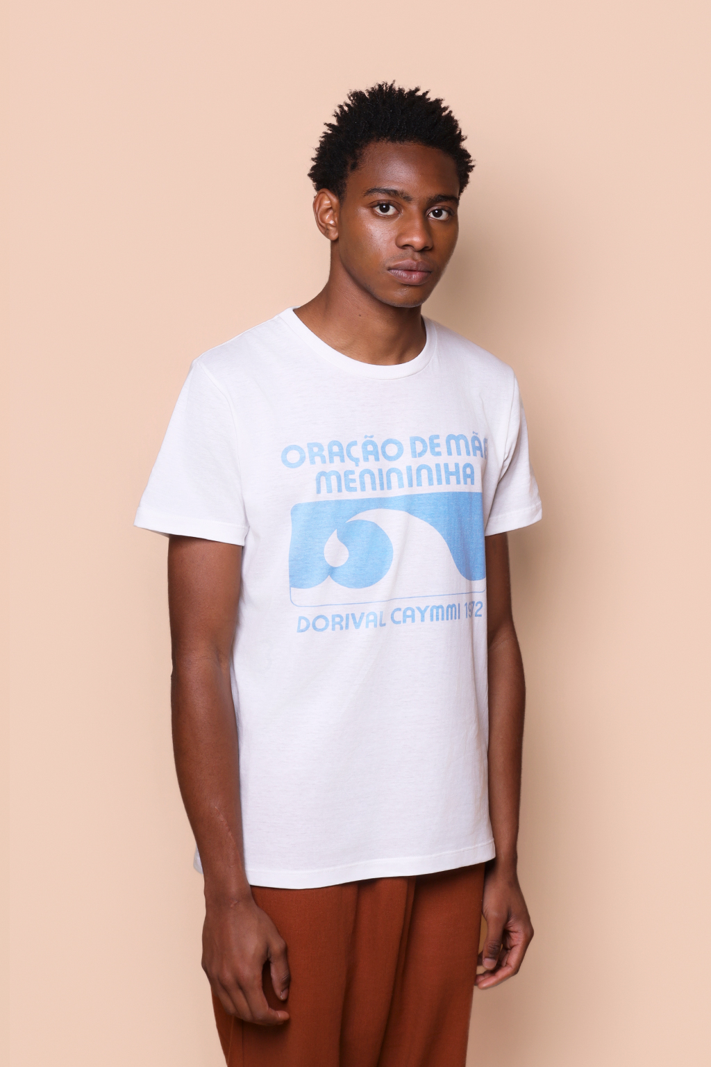 A camiseta Oração de Mãe Menininha é confeccionada em tecido meia malha de algodão para um toque mais macio e agradável. Essa peça faz parte de uma coleção collab com a obra de Dorival Caymmi. Em especial, a camiseta traz o nome da canção “Oração de mãe menininha”, lançada em 1972. A música trata da ialorixá Mãe Menininha do Gantois, a sacerdotisa que ocupou seu cargo durante um recorde de 63 anos, sendo considerada a ialorixá mais influente de Salvador. Não há consenso sobre a origem do apelido “menininha”, mas trata-se de um apelido que veio antes de seu cargo, onde Mãe Menininha lembra que sua mãe, tia e avó já a chamavam assim desde criança.