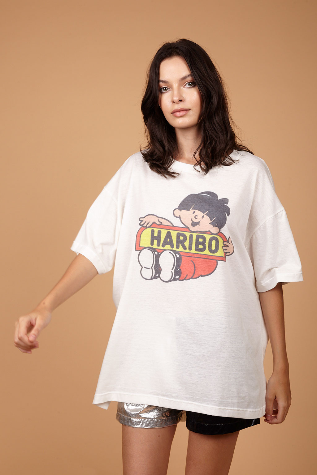 A camiseta oversize Haribo AMP é uma camiseta unissex, com modelagem ampla e manga curta, feita em tecido meia malha de algodão, que confere um toque mais macio e agradável. Além disso, a camiseta é confeccionada em tecido de meia malha mescla, atribuindo elasticidade à peça.