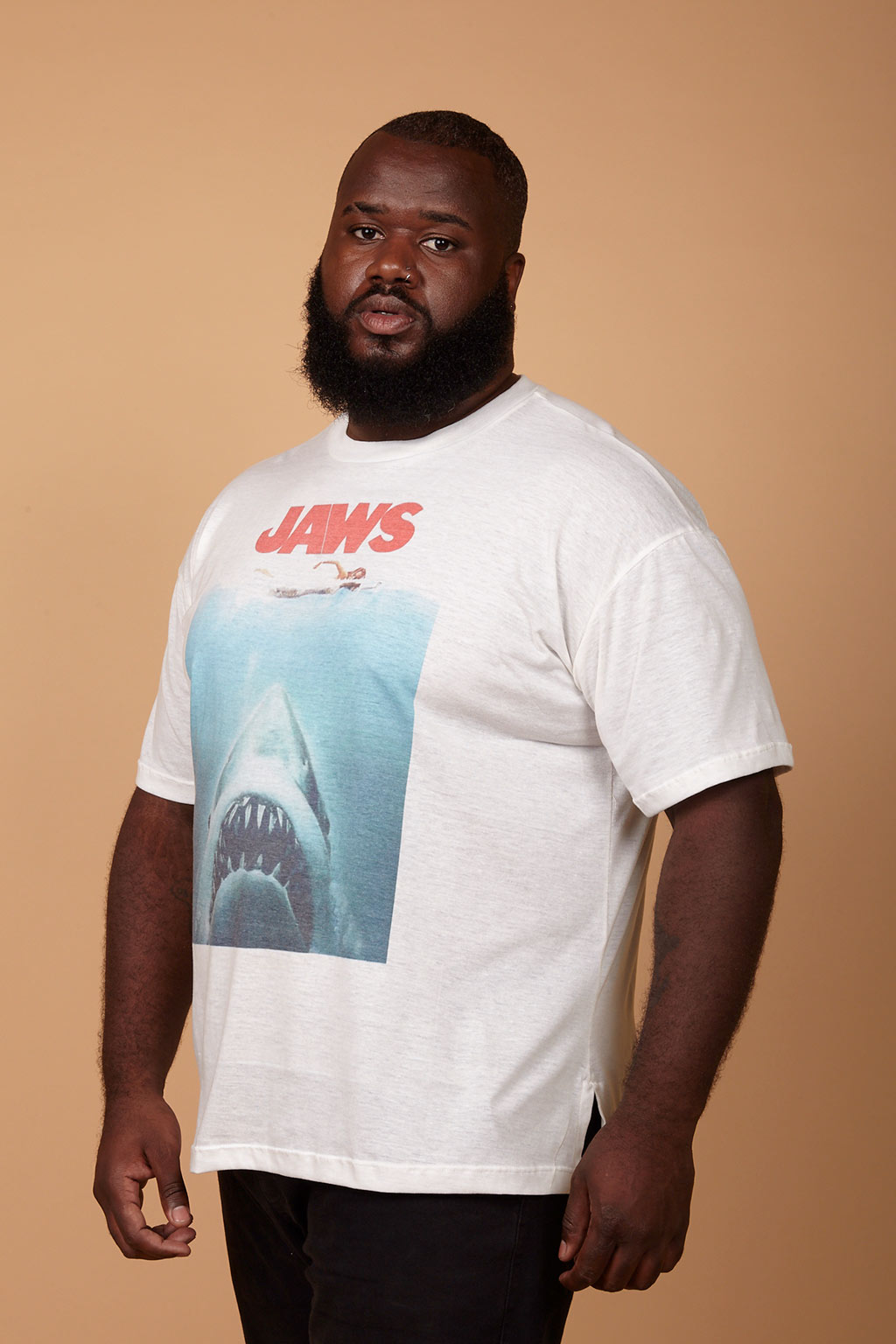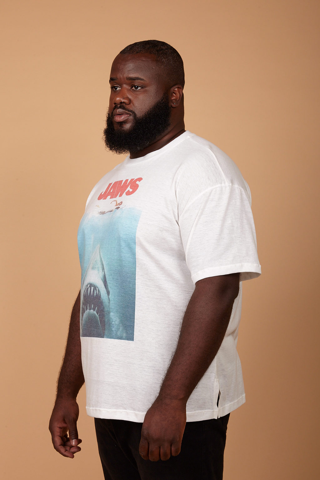 A camiseta oversize Jaws AMP é uma camiseta unissex, com modelagem ampla e manga curta, feita em tecido meia malha de algodão, que confere um toque mais macio e agradável. Além disso, a camiseta é confeccionada em tecido de meia malha mescla, atribuindo elasticidade à peça.