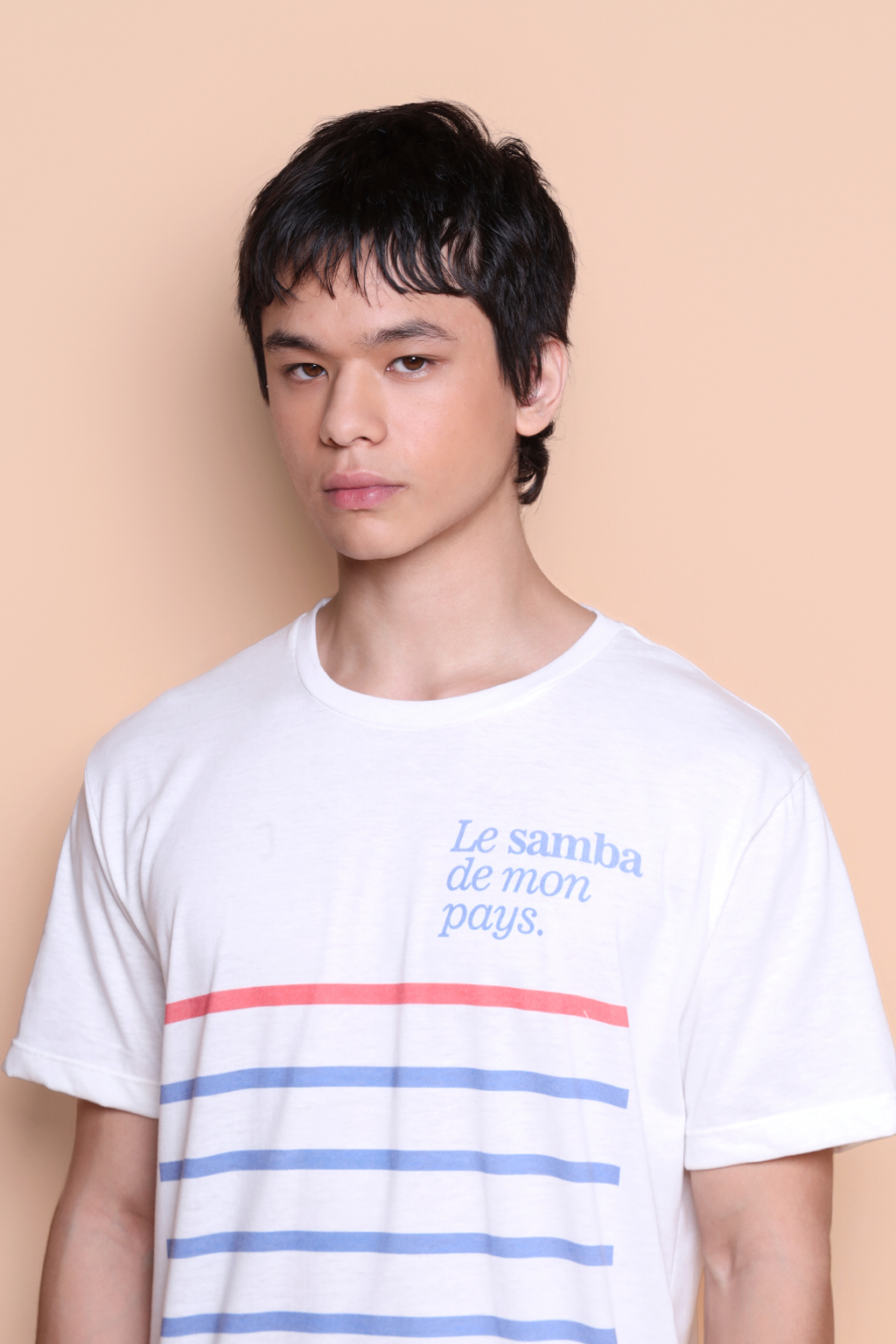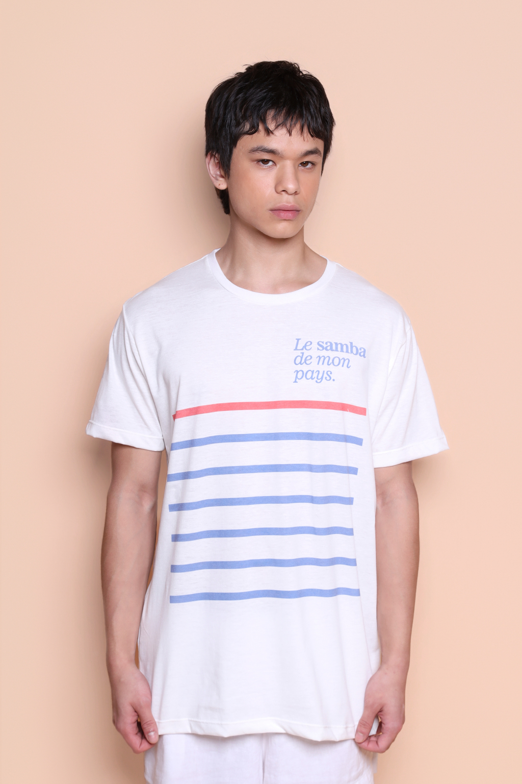 A camiseta Samba da minha terra é confeccionada em tecido meia malha de algodão para um toque mais macio e agradável. Essa peça faz parte de uma coleção collab com a obra de Dorival Caymmi. Em especial, a camiseta Samba da minha terra traz o nome da canção traduzido em francês, “le samba de mon pays”. Em 1972, Dorival foi perguntado pela revista Veja qual era sua definição pessoal de sucesso, e o baiano respondeu que seu sonho era chegar a perfeição de ser o autor de algo como “Ciranda, Cirandinha”, que se”perca no meio do povo”. O samba da minha terra é com certeza a obra de Dorival que mais chegou perto de realizar seu sonho, sendo a canção mais reproduzida de Dorival, segundo o Ecad.