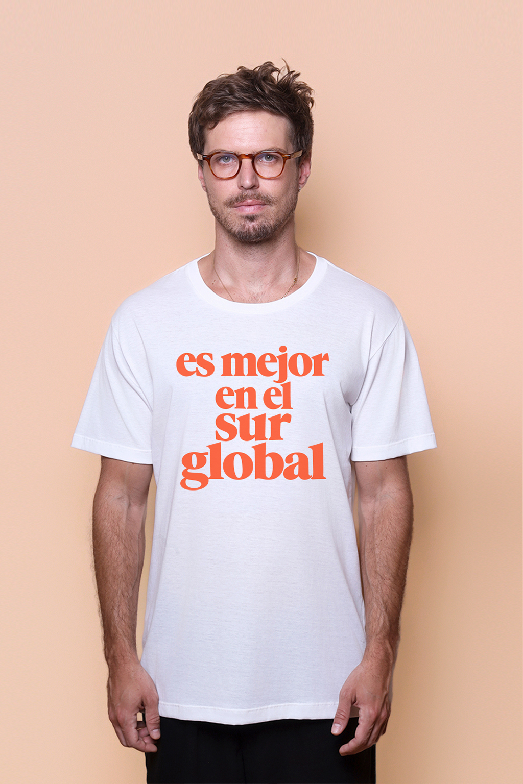 A camiseta Sur global é confeccionada em tecido meia malha de algodão, dando um toque mais macio e agradável. Além disso, tem como estampa uma frase em espanhol “es mejor en el sur global”, que pode ser traduzida para “é melhor no sul global”.