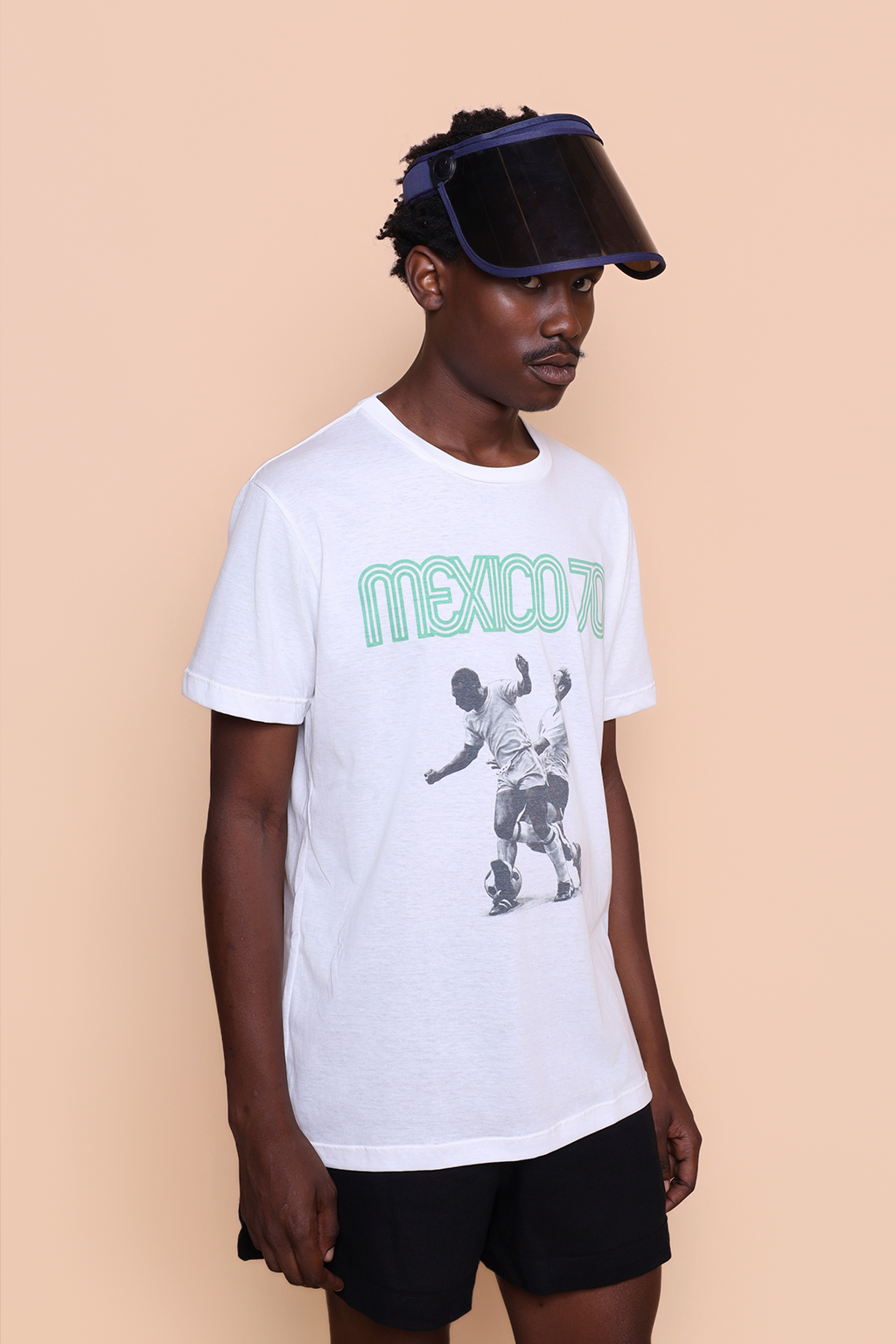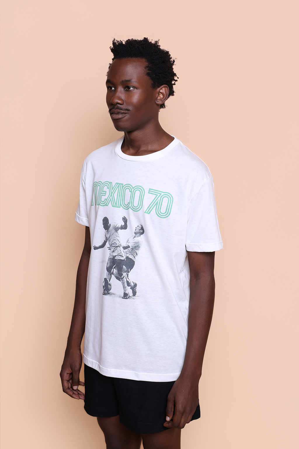 Camiseta México 70. Ambos os modelos vestem tamanho P.