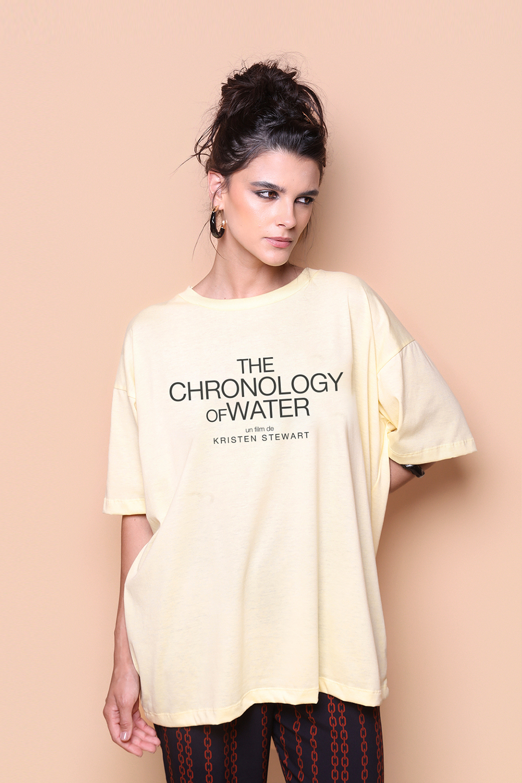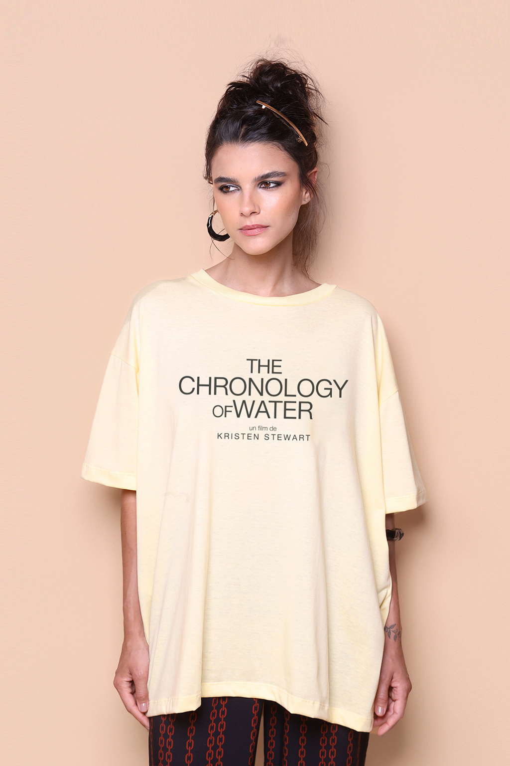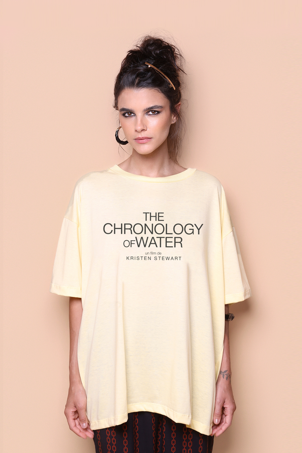A camiseta oversize A Cronologia da Água é confeccionada em tecido meia malha de algodão para um toque mais macio e agradável. Essa peça faz parte de uma coleção collab com o filme A Cronologia da Água, filme co-produzido, escrito e dirigido por Kristen Stewart, e marca sua estreia na direção de longas-metragens, inspirado no livro homônimo de 2011 escrito por Lidia Yuknavitch. Após sua estreia mundial no Festival de Cannes de 2025 com avaliações positivas, o filme chega no circuito dos cinemas nacionais a partir do dia 02/04/2026.
