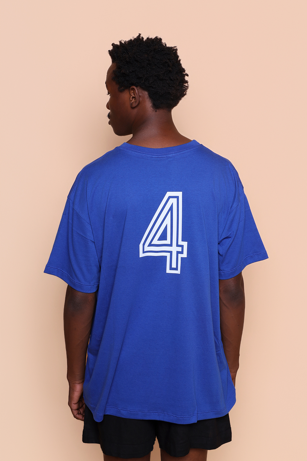 Camiseta oversize azul Seleção de 78. Ambos os modelos vestem tamanho 1.