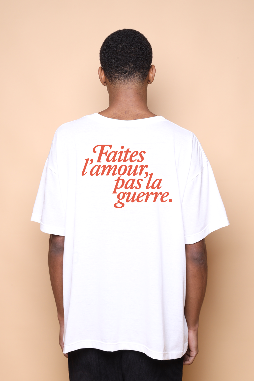 Camiseta oversize collab Astrid Fontenelle. A modelo mede 1,72 e o modelo mede 1,78 e ambos usam tamanho 1.