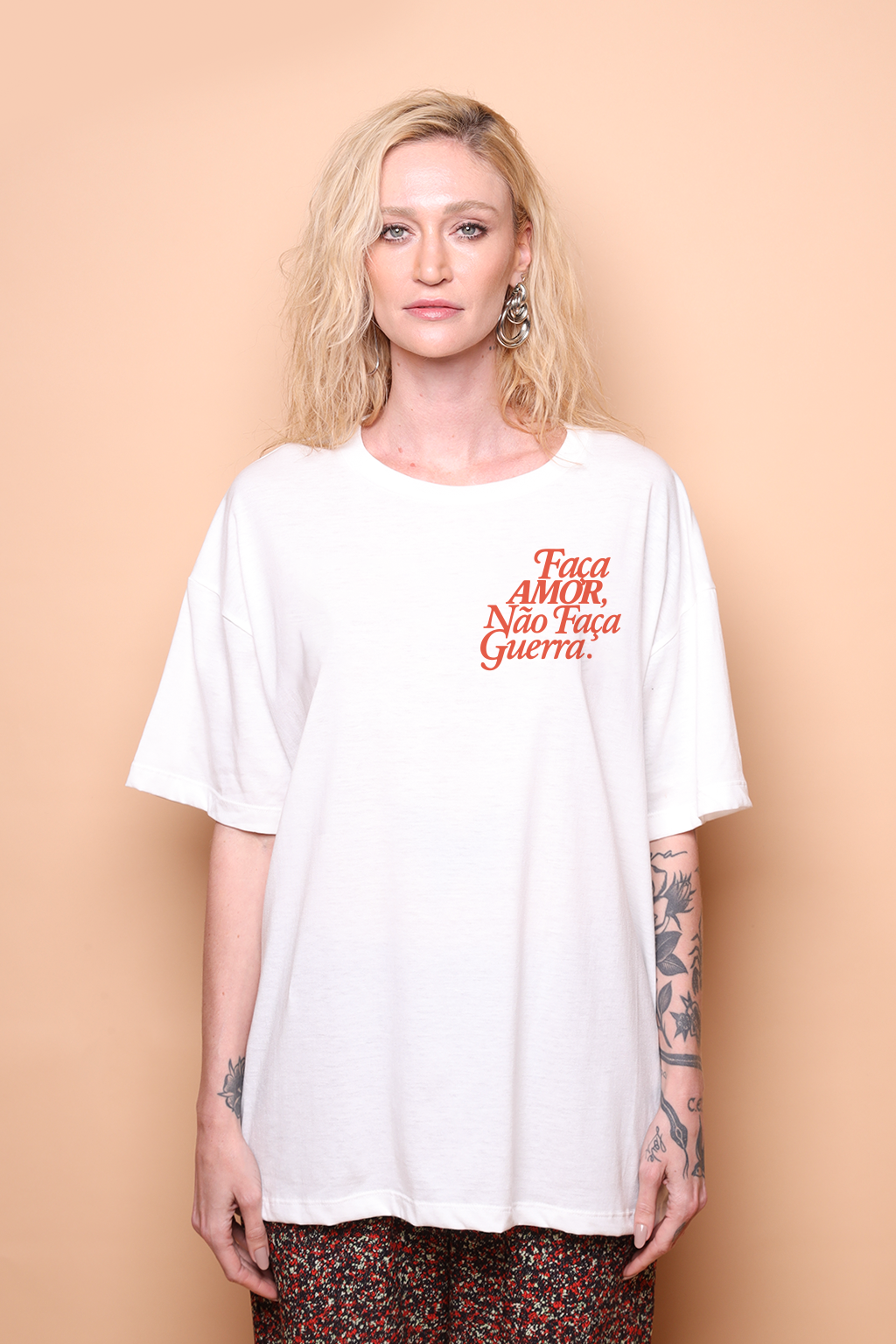 A camiseta oversize Astrid Fontenelle é confeccionada em tecido meia malha de algodão, dando um toque mais macio e agradável. Além disso, tem como estampa
