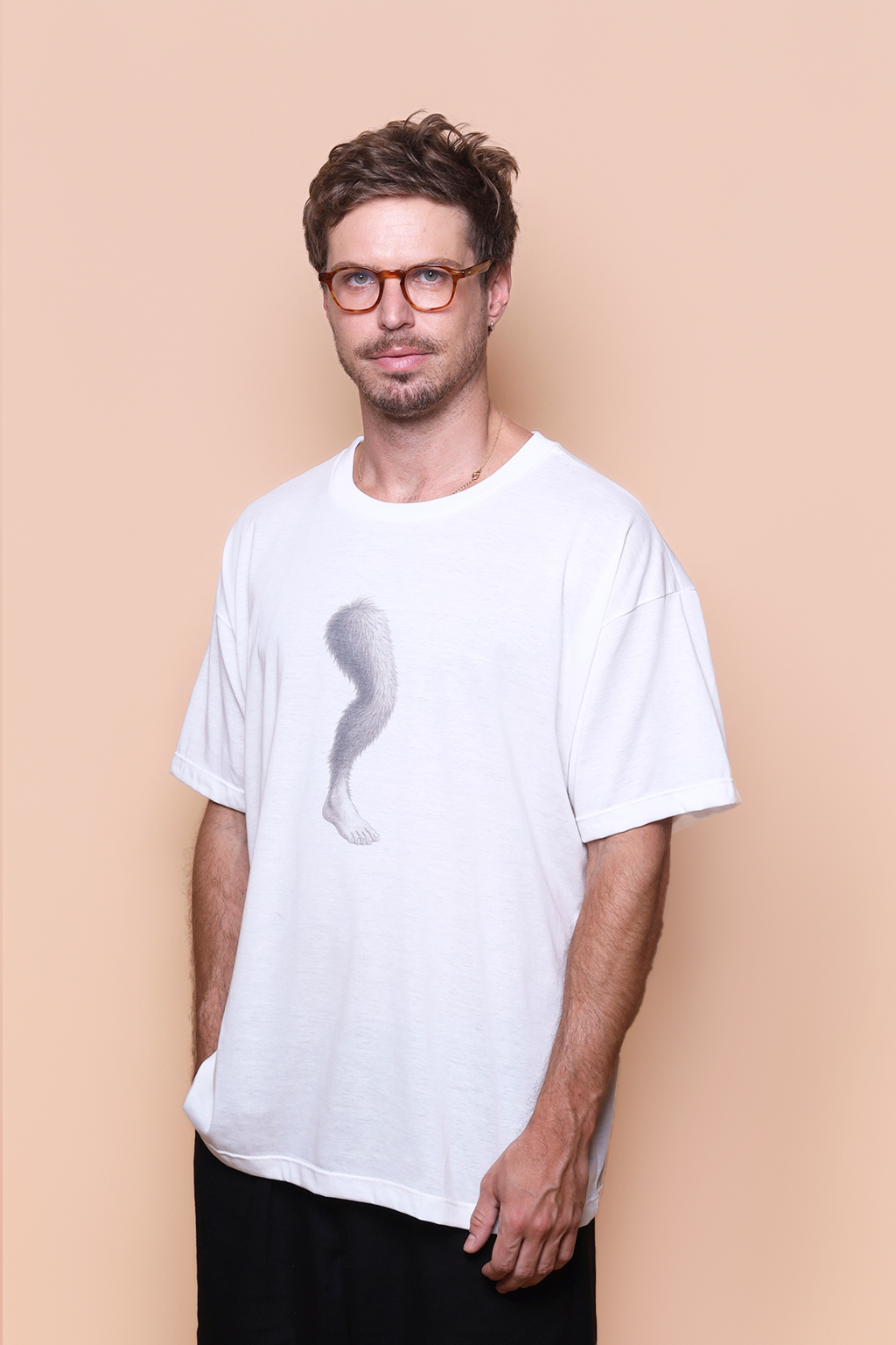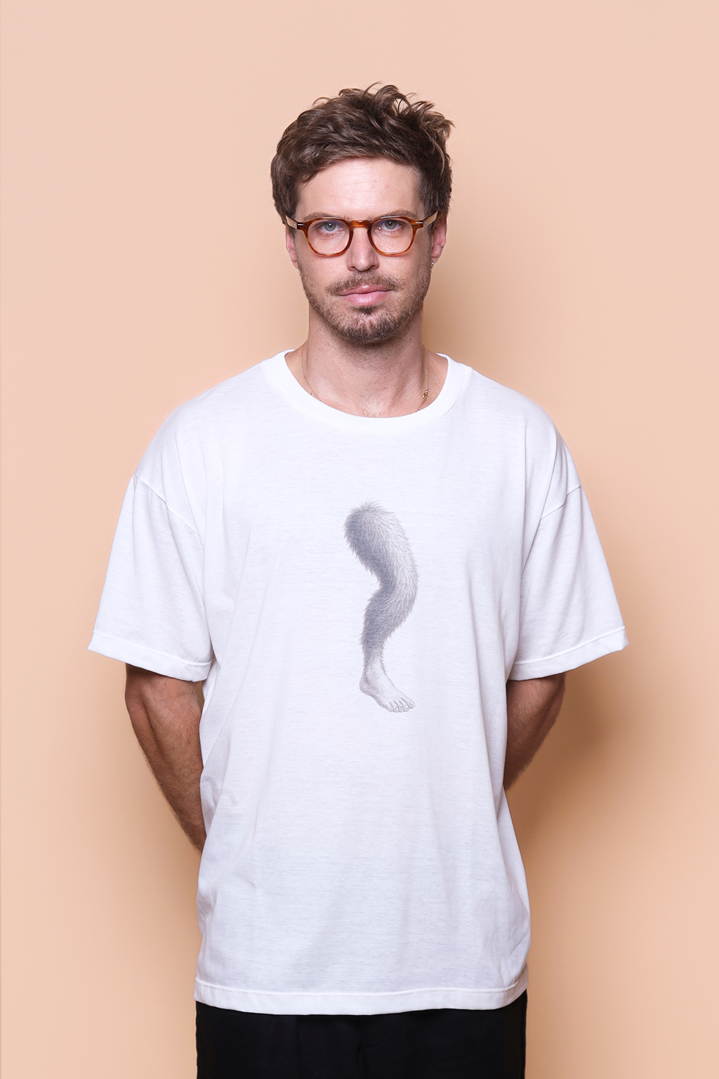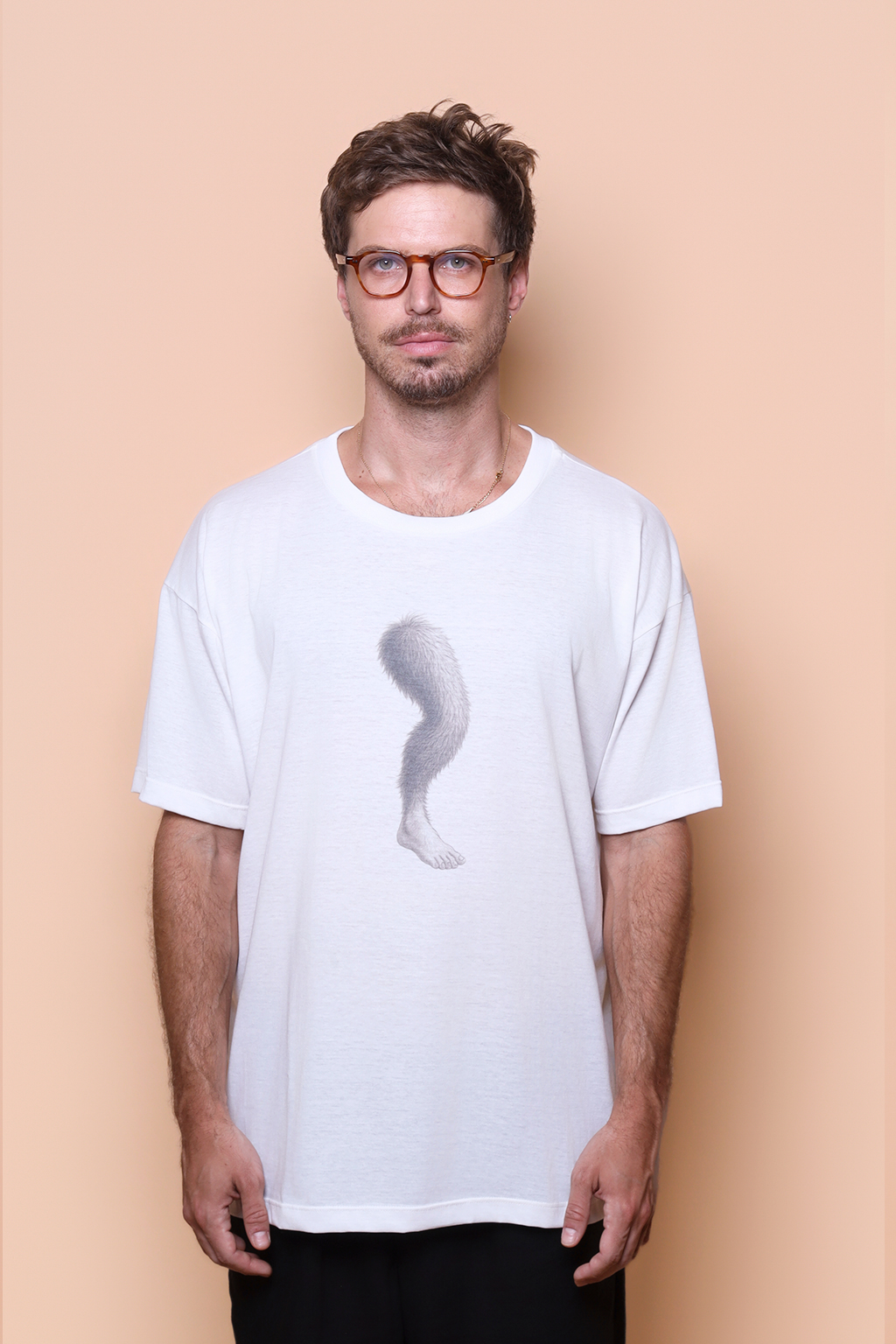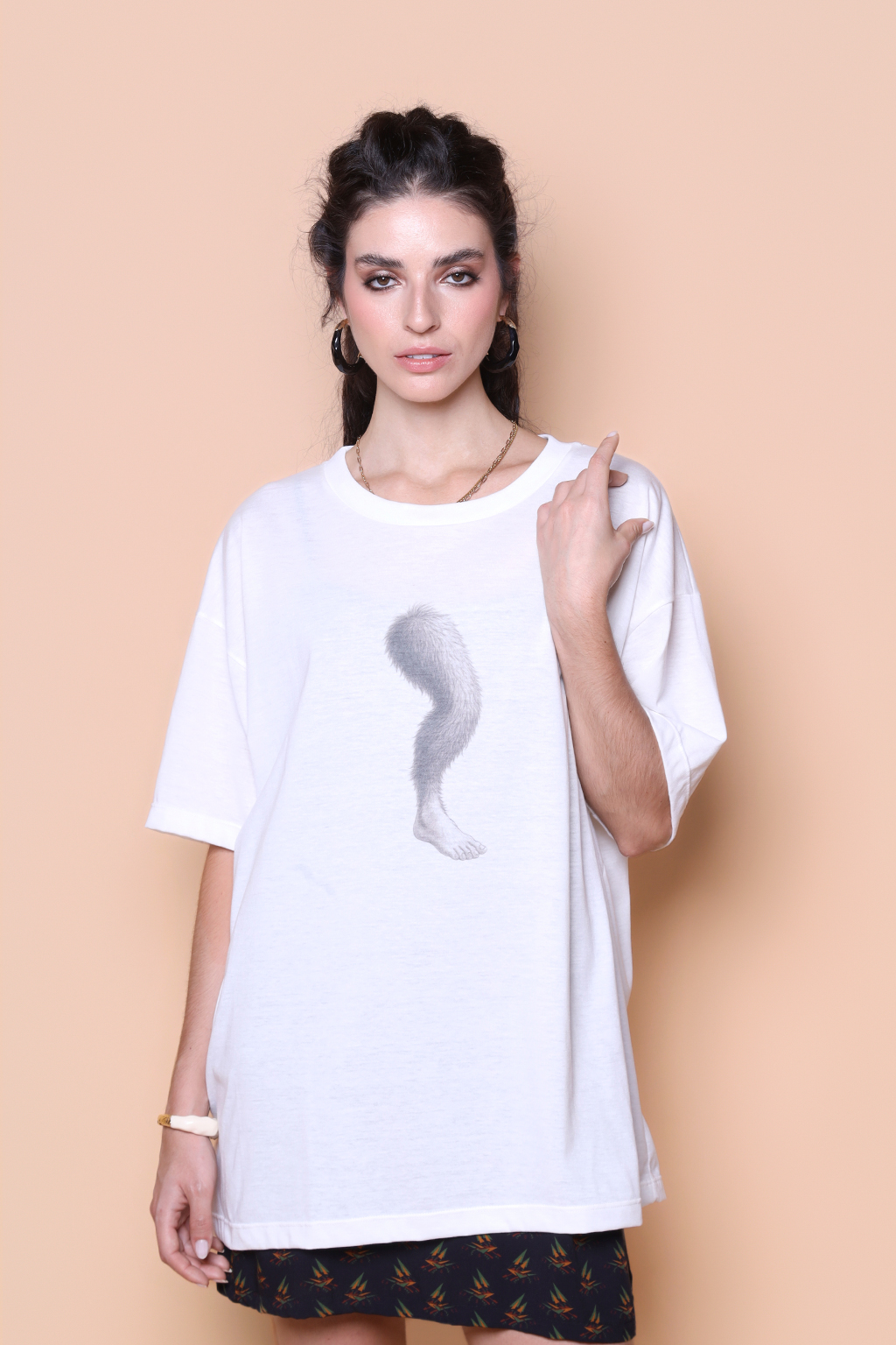 Camiseta oversize collab O Agente Secreto perna cabeluda