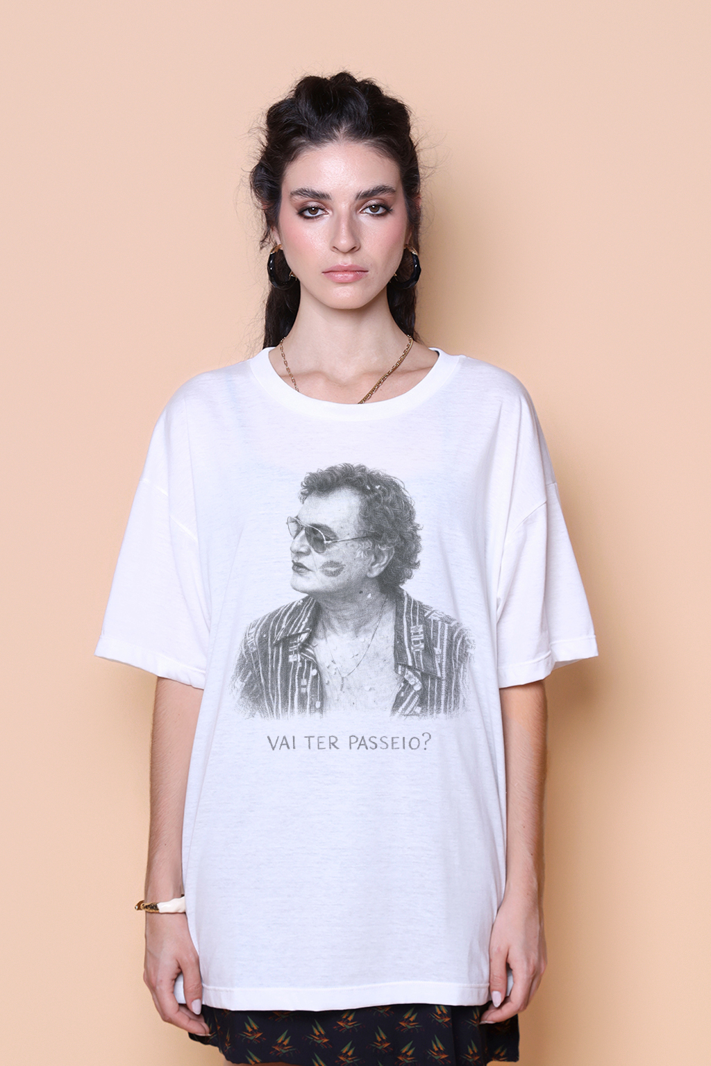A camiseta oversize Robério Diógenes é confeccionada em tecido meia malha de algodão para um toque mais macio e agradável. Essa peça faz parte de uma coleção collab com o filme O Agente Secreto, novo filme de Kleber Mendonça Filho ganhador do Globo de Ouro. Em especial, a camiseta Robério Diógenes traz como estampa uma foto do Delegado Euclides (Robério), com a frase “vai ter passeio?. O ator cearense é natural do município de Sertão dos Inhamuns, e se mudou para o Rio de Janeiro, na década de 1980, onde se aventurou por 10 anos nos palcos e em espetáculos, até regressar para o Ceará, indo morar em Fortaleza. Com várias participações em diversos longas, Robério sentia vontade em consolidar um vínculo intenso com um grande personagem, que surgiu com sua oportunidade no filme O Agente Secreto.