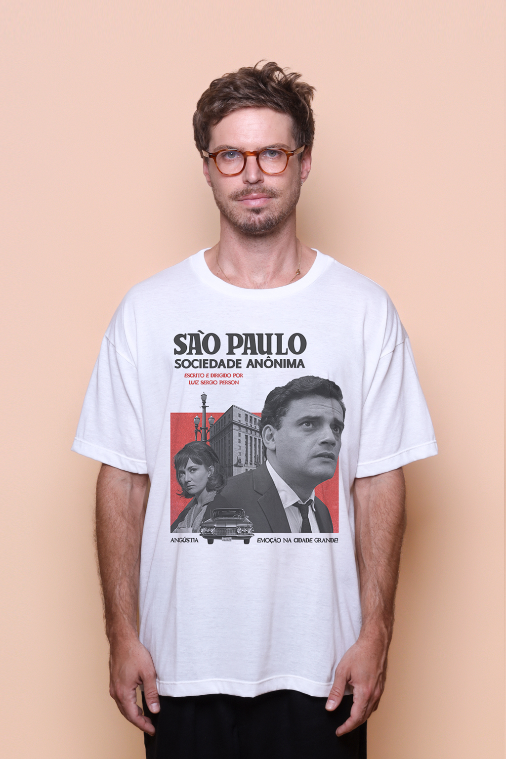 A camiseta oversize São Paulo Sociedade Anônima é confeccionada em tecido meia malha de algodão para um toque mais macio e agradável. Essa peça faz parte de uma coleção collab com Marina Person, atriz e cineasta brasileira, e homenageia o filme lançado em 1965 por seu pai, Luiz Sergio Person, que reestreia nos cinemas em comemoração aos 60 anos do filme. A versão restaurada faz parte de uma parceria entre a Lauper Films, a Cinemateca Brasileira e a Cineteca di Bologna, e teve sua primeira exibição no Festival Il Cinema Ritrovato, evento dedicado à preservação de clássicos do cinema mundial filmados em película. São Paulo Sociedade Anônima é considerado um marco do Cinema Novo paulista, chegando a ser indicado ao Oscar de 1966 na categoria de melhor filme estrangeiro.