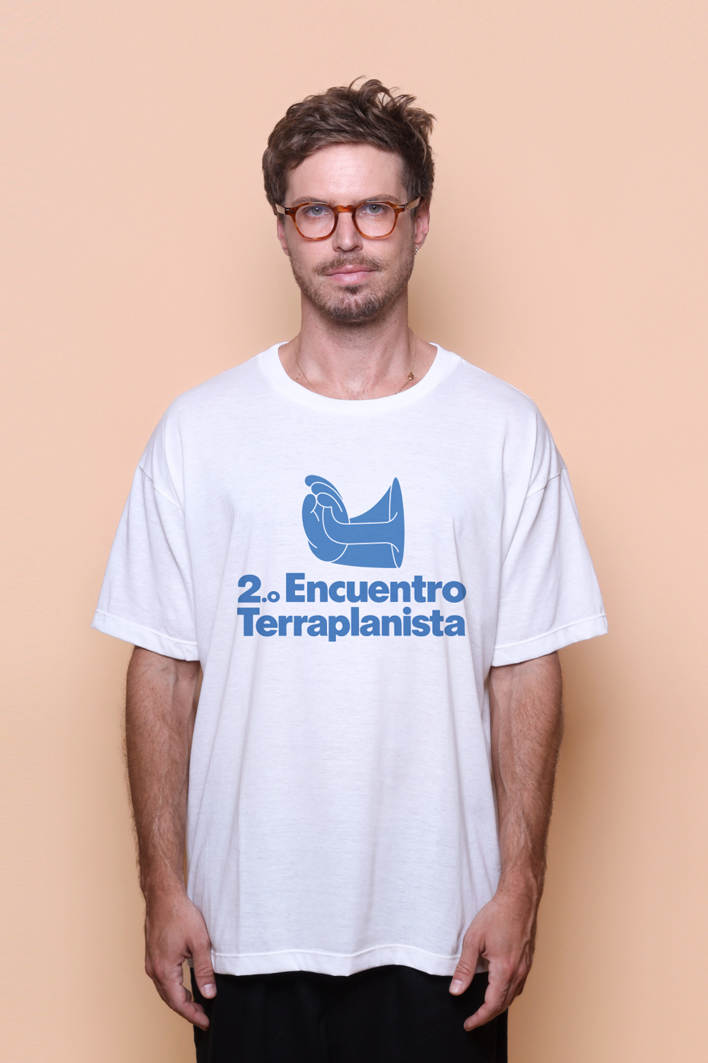 A camiseta oversize 2⁰ Encontro Terraplanista é uma peça unissex, com modelagem ampla, manga curta e confeccionada em tecido meia malha de algodão, dando um toque mais macio e agradável. A camiseta 2⁰ Encuentro Terraplanista tem como estampa a frase em espanhol “2⁰ Encuentro Terraplanista”, com um logo de uma mão “puxando” uma manivela do centro de uma terra plana.