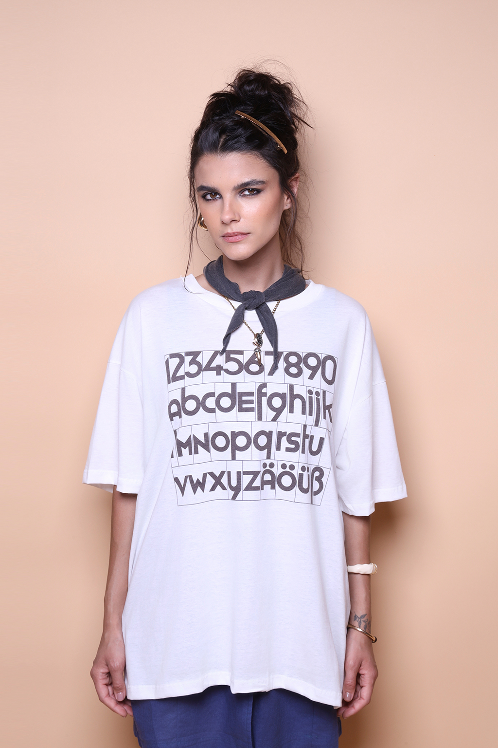 A camiseta oversize Burchartz é confeccionada em tecido meia malha de algodão, dando um toque mais macio e agradável. Além disso, tem como estampa a tipografia desenvolvida por Max Burchartz, pintor, tipógrafo e fotógrafo alemão. Considerado um pioneiro do design moderno, Burchartz nunca atingiu a mesma fama de outros artistas de seu tempo, embora muitos dos designs de comunicação atuais , como o sistema de controle de cores, são baseados no trabalho de Burchartz.