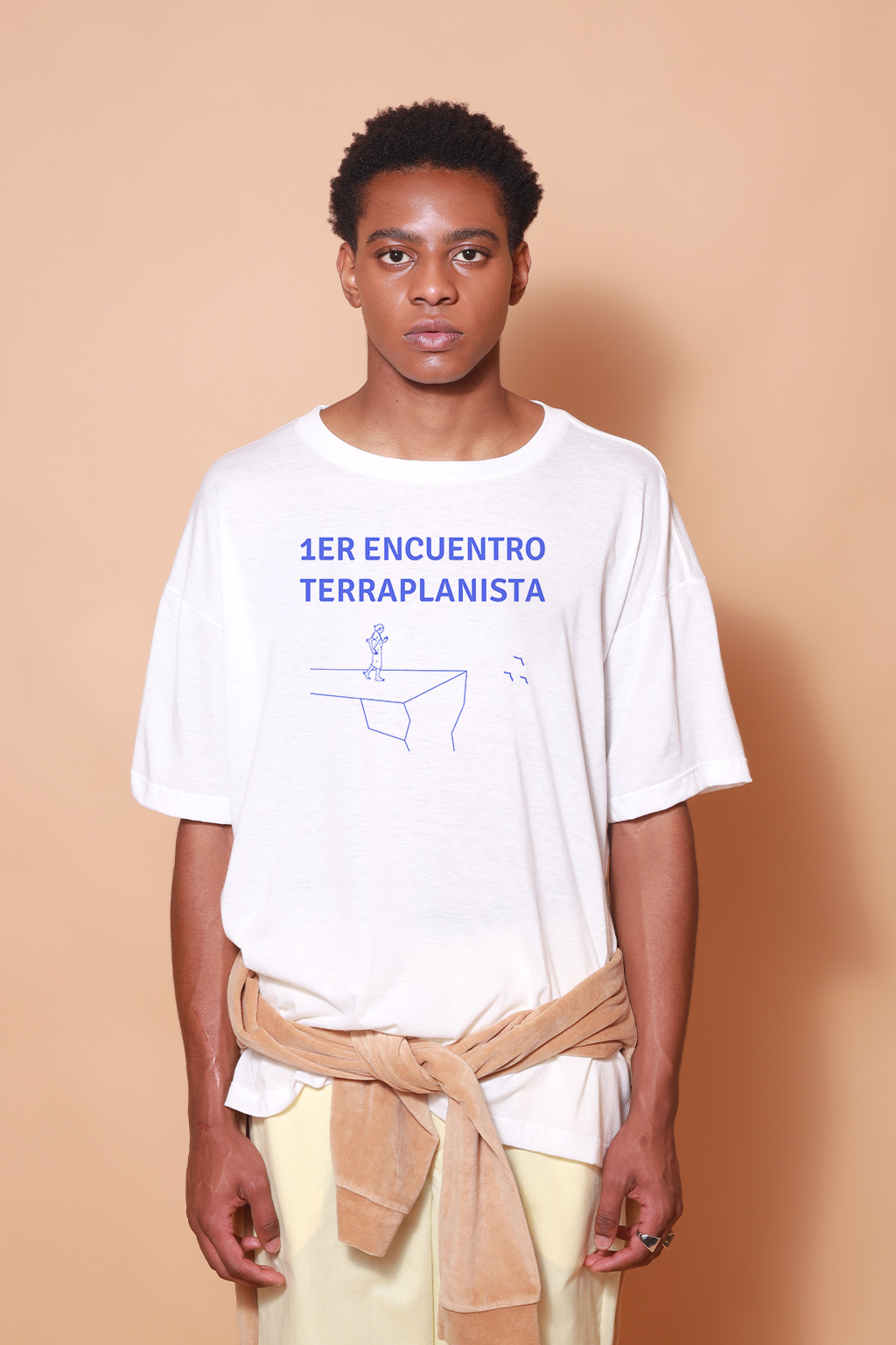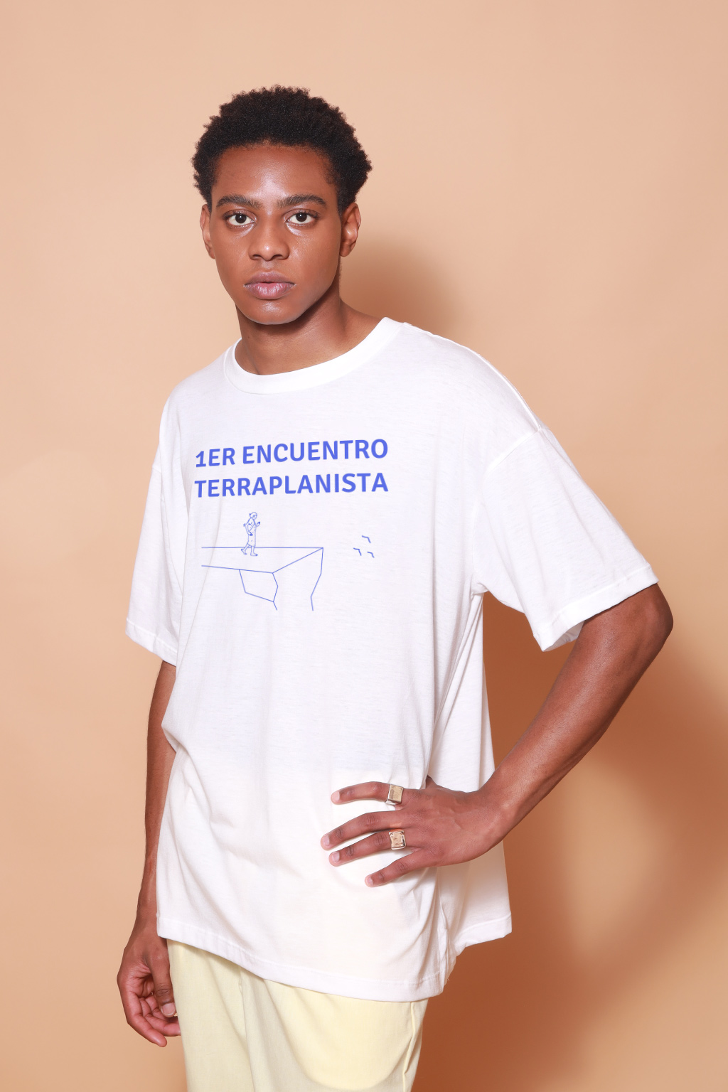 A camiseta oversize Encontro Terraplanista AMP é uma peça unissex, com modelagem ampla, manga curta e confeccionada em tecido meia malha de algodão, dando um toque mais macio e agradável. A camiseta Encontro Terraplanista tem como estampa a frase em espanhol “primeiro encontro de terraplanistas”, com a figura de uma pessoa caminhando em direção ao final do mundo. No Brasil, o primeiro encontro de terraplanistas aconteceu no dia 10/11/2019, na Convenção Nacional da Terra Plana, em São Paulo.