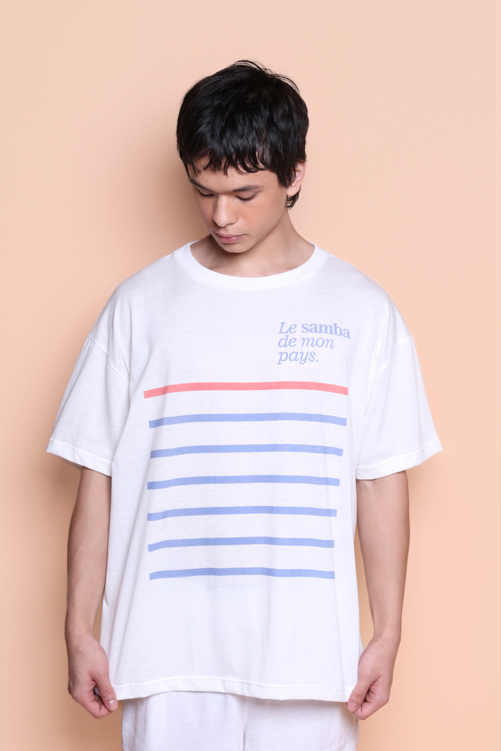 A camiseta oversize Samba da minha terra é confeccionada em tecido meia malha de algodão para um toque mais macio e agradável. Essa peça faz parte de uma coleção collab com a obra de Dorival Caymmi. Em especial, a camiseta Samba da minha terra traz o nome da canção traduzido em francês, “le samba de mon pays”. Em 1972, Dorival foi perguntado pela revista Veja qual era sua definição pessoal de sucesso, e o baiano respondeu que seu sonho era chegar a perfeição de ser o autor de algo como “Ciranda, Cirandinha”, que se”perca no meio do povo”. O samba da minha terra é com certeza a obra de Dorival que mais chegou perto de realizar seu sonho, sendo a canção mais reproduzida de Dorival, segundo o Ecad.