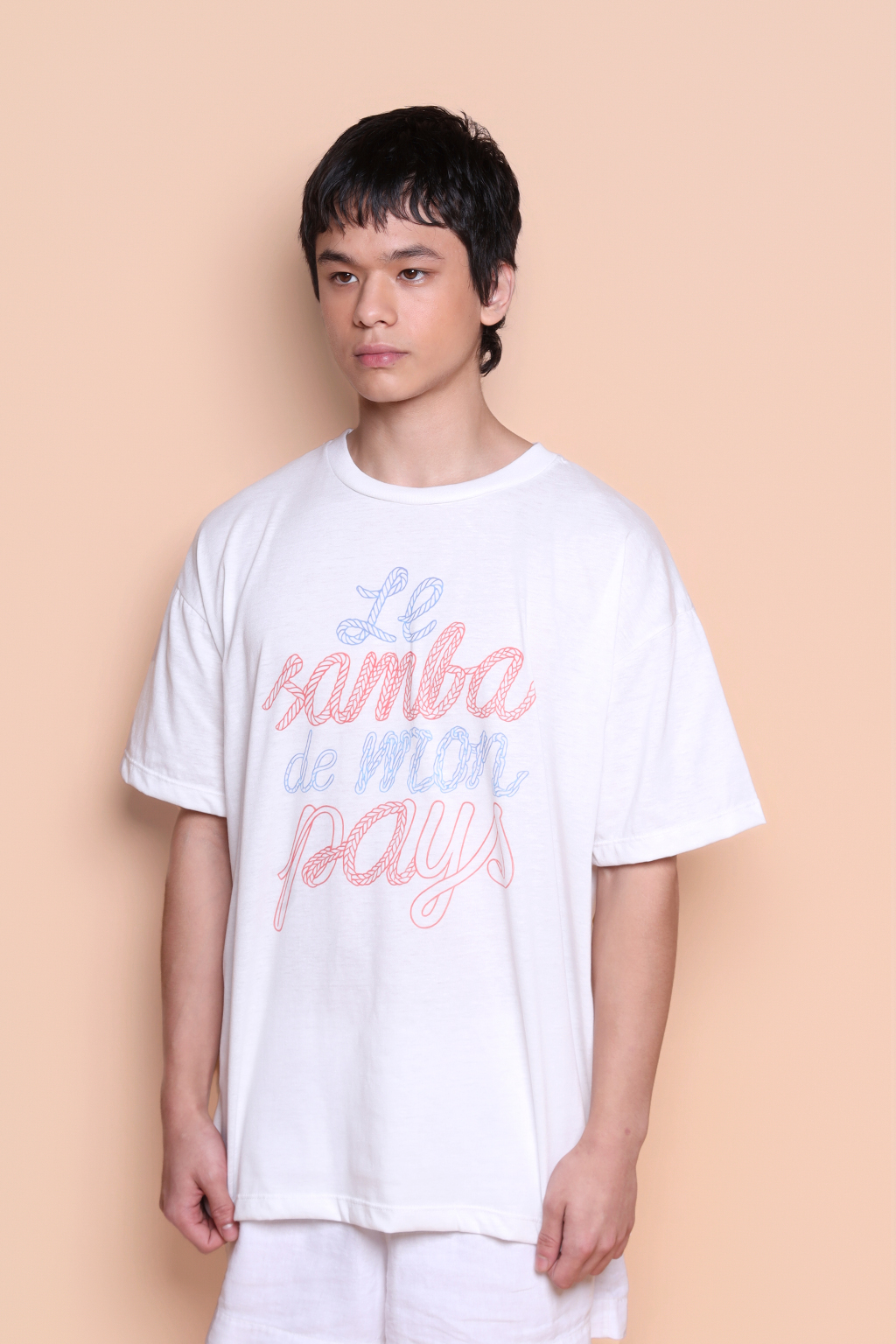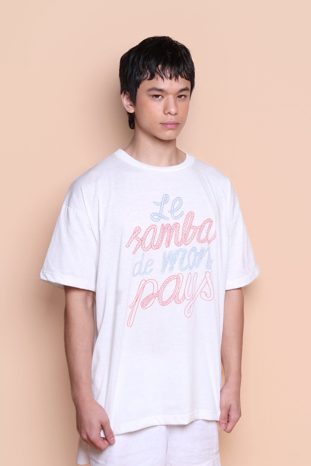 A camiseta oversize Samba de mon pays é confeccionada em tecido meia malha de algodão para um toque mais macio e agradável. Essa peça faz parte de uma coleção collab com a obra de Dorival Caymmi. Em especial, a camiseta Samba de mon pays traz o nome da canção “Samba da minha terra”, em francês. A canção celebra o samba de roda, e faz a ligação direta do samba com a identidade brasileira.