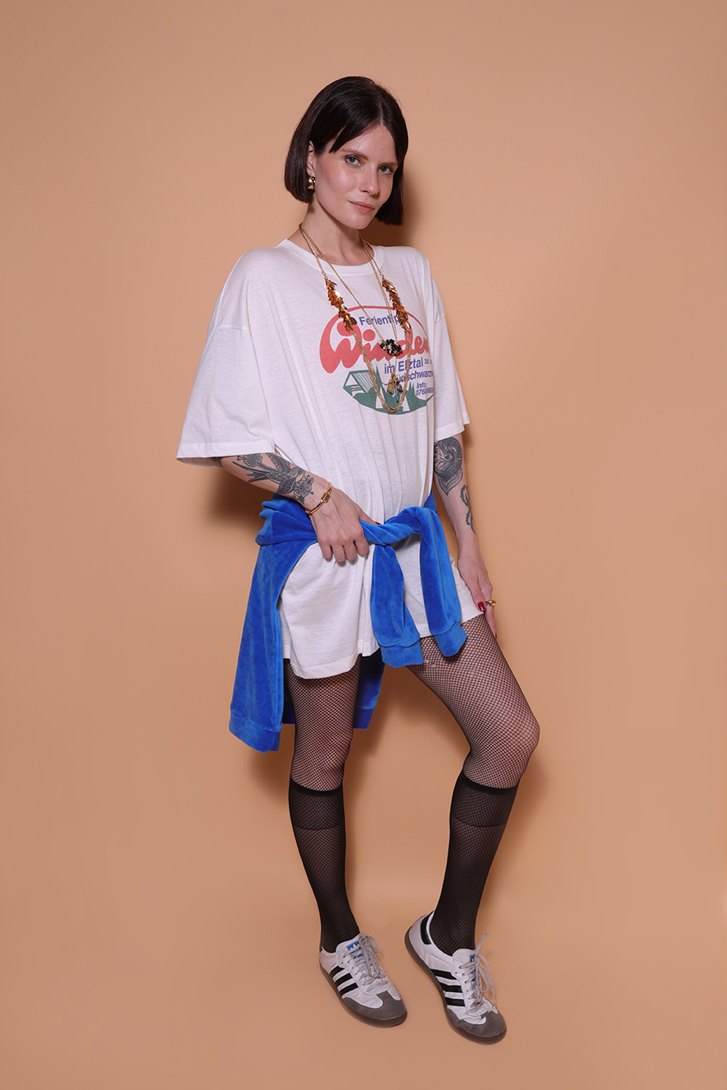 A camiseta oversize Winden AMP é uma peça unissex, com modelagem ampla e manga curta. Nossa camiseta de malha é feita em tecido meia malha de algodão, confere um toque mais macio e agradável. A camiseta oversize Winden tem como estampa uma camiseta turística com uma frase que diz “Bad Urach. Schwabische Alb”, e diz respeito à cidade de Bad Urach, na Alemanha. A cidade de Bad Urach está localizada na reserva da bioesfera dos Alpes da Suábia (“Schwabische Alb”), que conta com passeios e trilhas dentro da reserva, além de fontes termais.