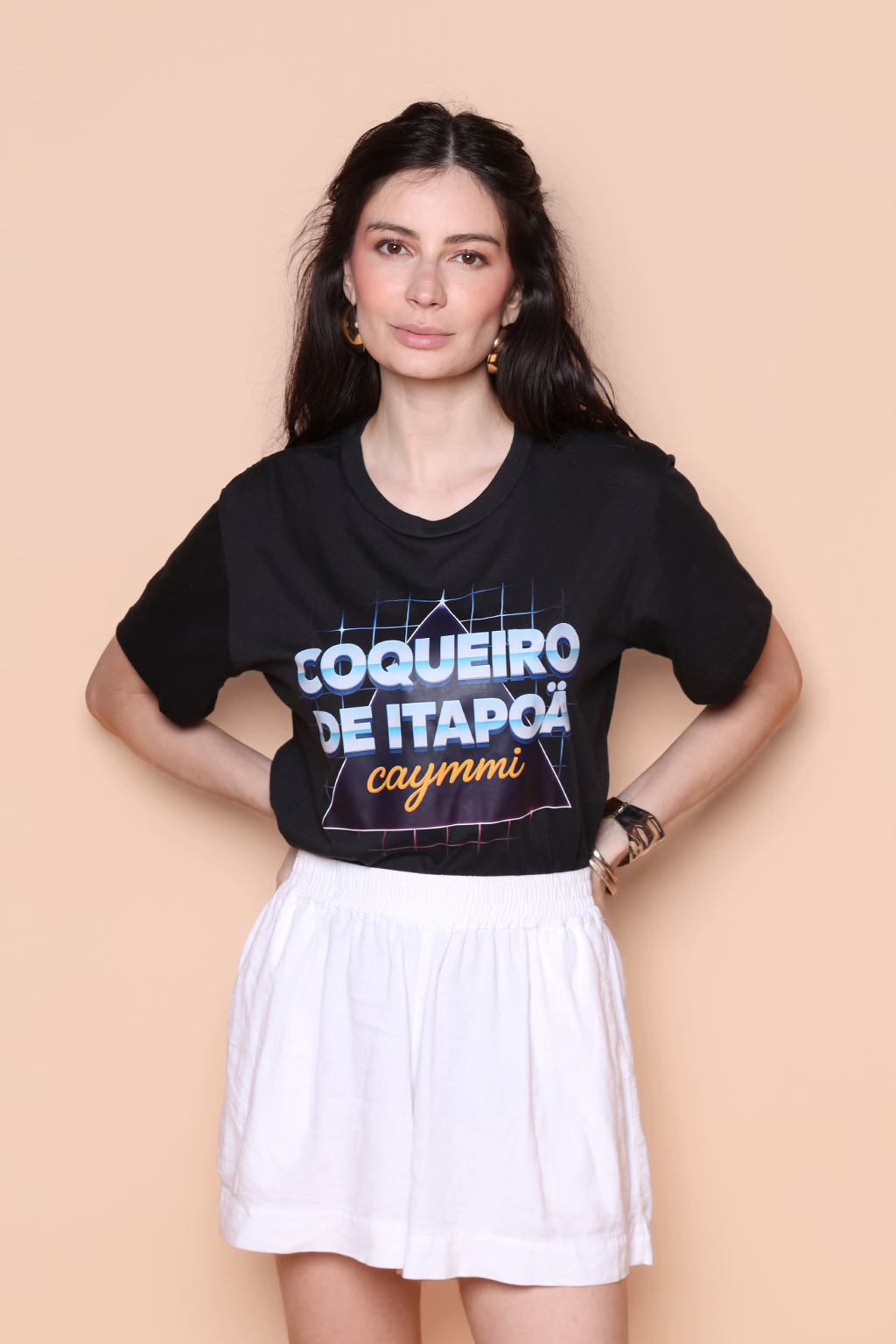 A camiseta Coqueiro de Itapoã é confeccionada em tecido meia malha de algodão para um toque mais macio e agradável. Essa peça faz parte de uma coleção collab com a obra de Dorival Caymmi. Em especial, a camiseta Coqueiro Itapoã traz o título da canção que foi escrita por Caetano Veloso em homenagem ao bairro e também ao Dorival e sua obra, que afirmou que “inventou” o bairro, no sentido de ver o lugar como um “deserto” que seria transformado em um lugar “inventado“ e cantado, onde suas músicas trouxeram popularidade e visibilidade ao local.