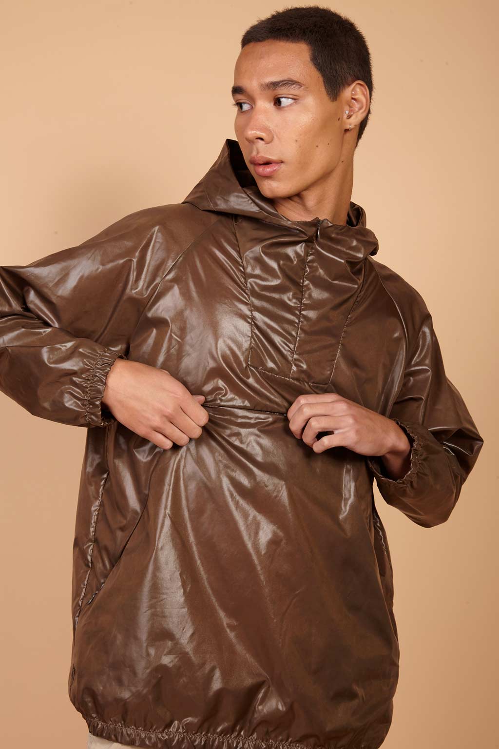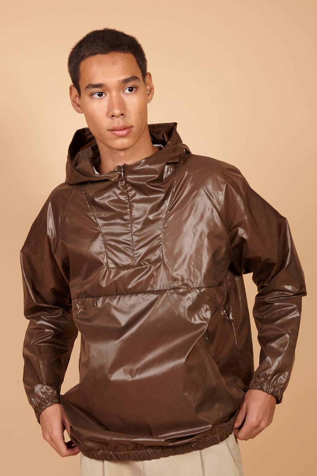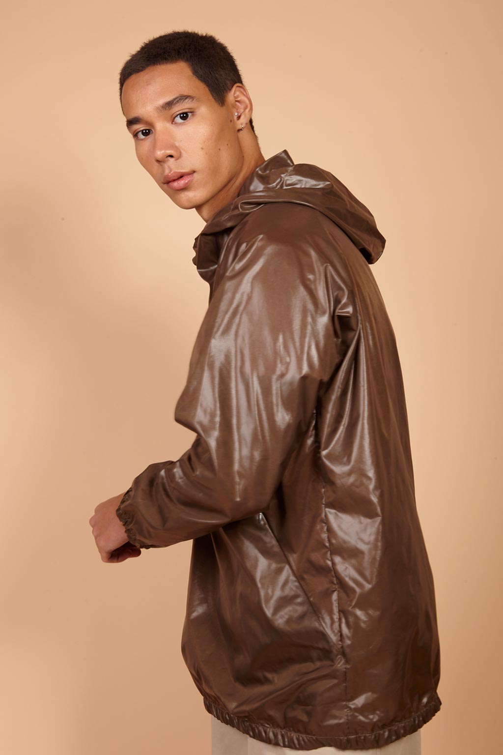 A jaqueta AMP nylon café é uma jaqueta corta vento com mangas longas, capuz, bolsos embutidos e fechamento em zíper. A jaqueta de nylon café é uma peça clássica perfeita para um dia frio, mas que também pode ser usada para compor um look para noite. Além disso, a jaqueta possui acabamento em cirrê, dando brilho à peça, e bolsos embutidos, aumentando praticidade e conforto.