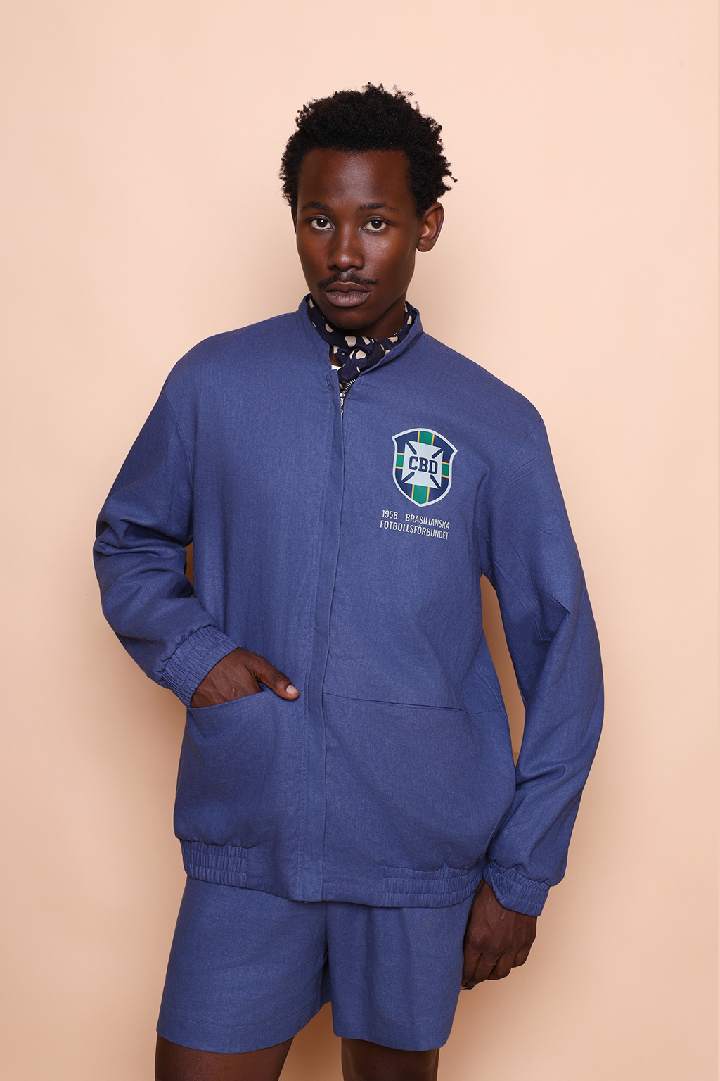 Por fim, tem como estampa o agasalho da Seleção Brasileira de 1958, ano onde o Brasil sagrou-se campeão mundial pela primeira vez. Embaixo do logo da Confederação Brasileira de Desportos (CBD) está escrito em sueco “1958 Brasiliansk Fotbollförbundet”, que pode ser traduzido para Federação Brasileira de Futebol. Naquele ano, a Copa do Mundo foi realizada na Suécia, onde o Brasil enfrentou os donos da casa na final do torneio. Comandada por Pelé e Garrincha, a seleção venceu a anfitriã por 5 a 2, primeira e única vez que um país sul-americano venceu uma Copa em solo europeu.