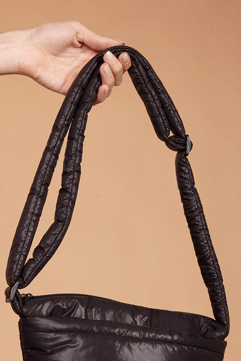 A pochete AMP é feita em tecido matelassê de nylon, atribuindo resistência e leveza à peça. Também apresenta acabamento em cirê, dando brilho ao tecido. A pochete puffer conta com um bolso principal, com zíper, e um bolso lateral pequeno, para garantir conforto e praticidade, com fechamento em botão magnético. Apresenta alça de ombro regulável.