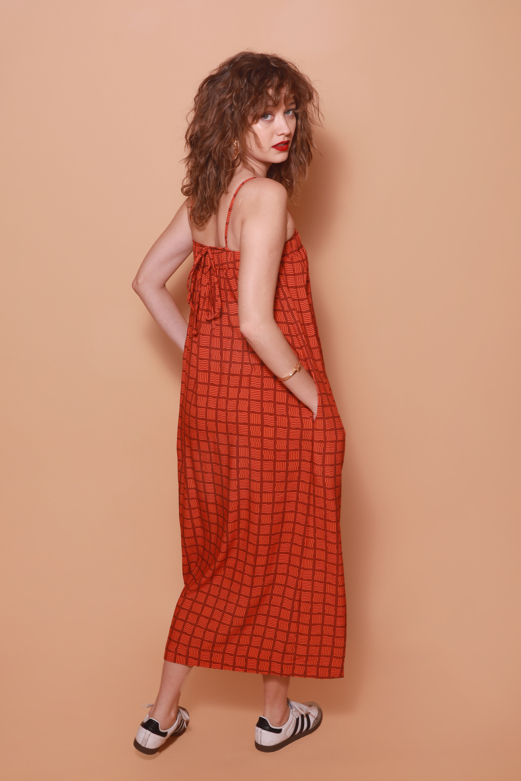 O vestido balonê AMP é feito em viscose, que deixa o tecido com um toque mais leve e macio, ideal para os dias de verão. Nosso vestido tem modelagem balonê, comprimento longo e alças finas.
